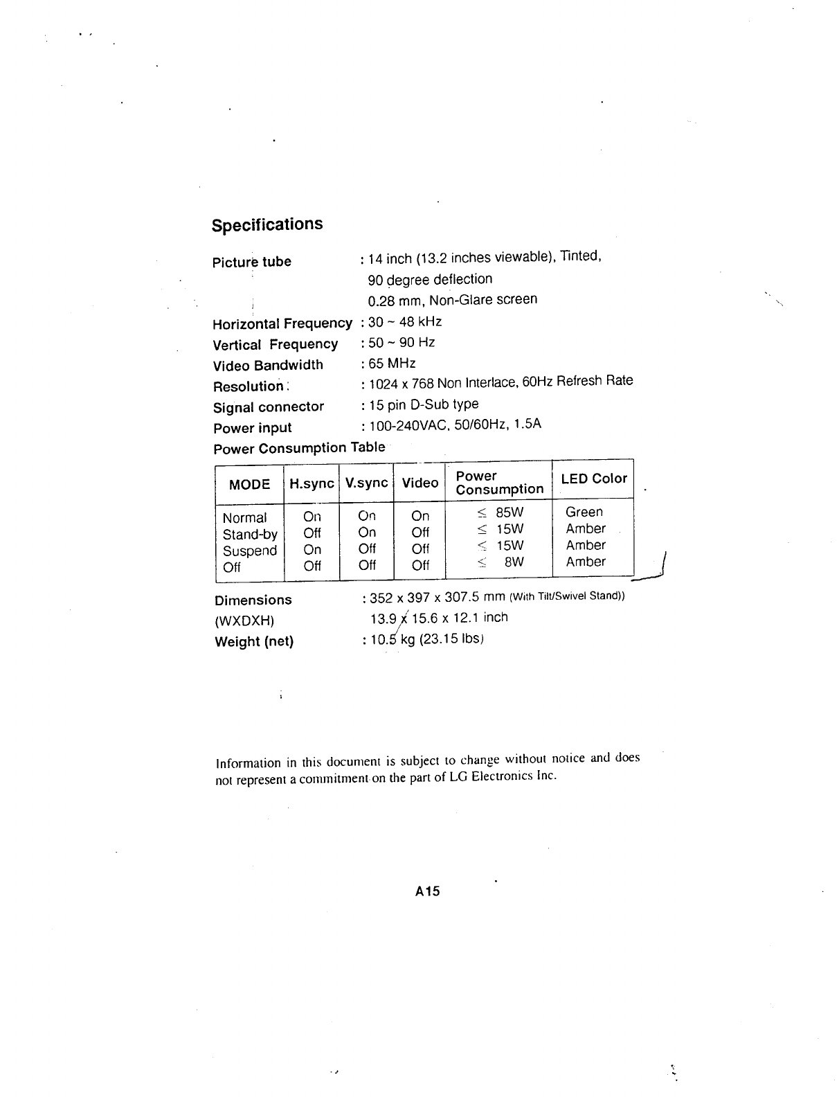 LG Electronics USA CB440 14-inch Color Monitor User Manual