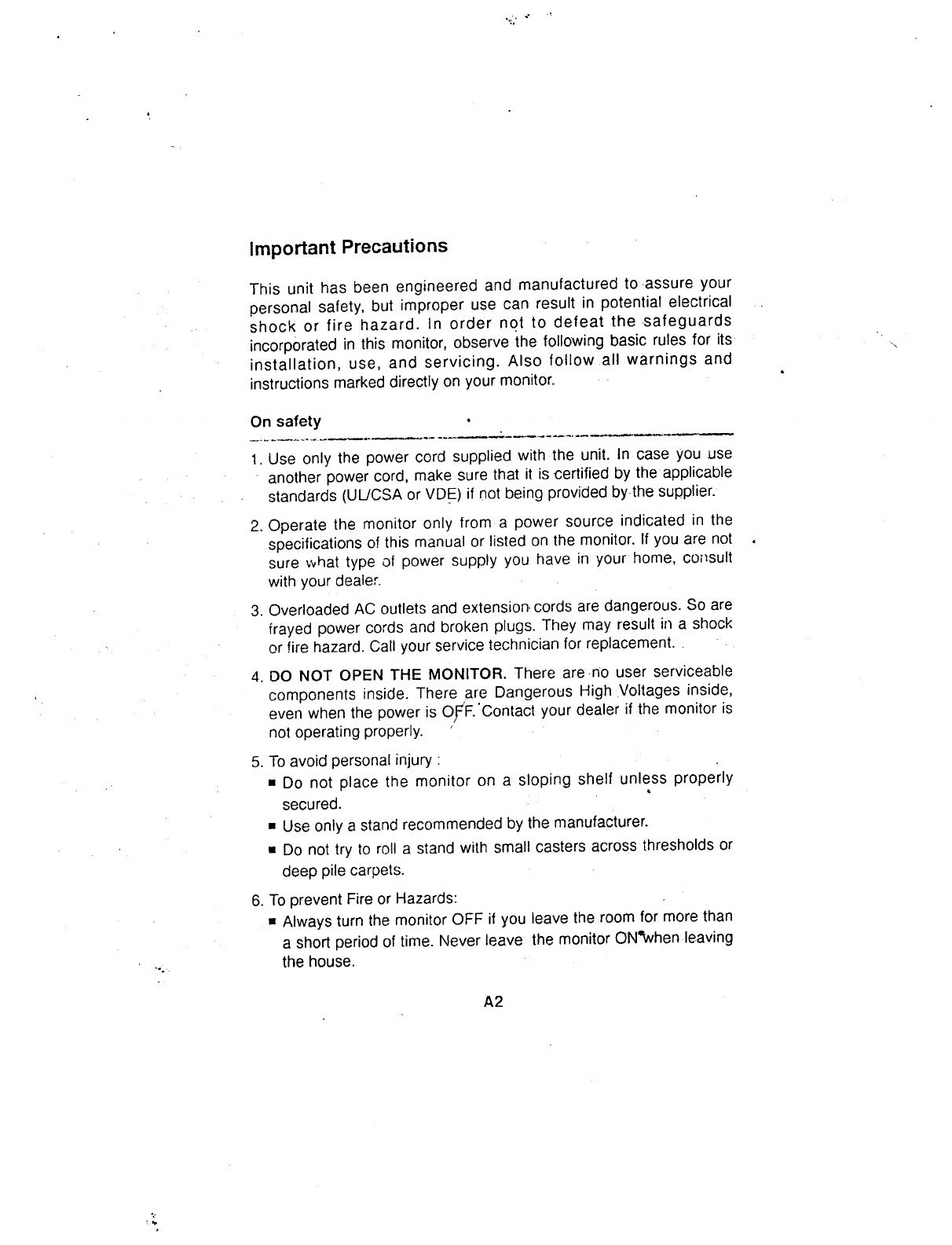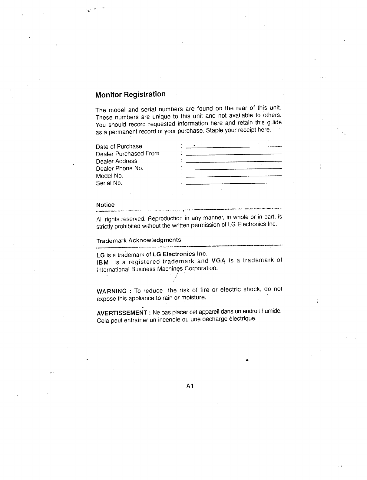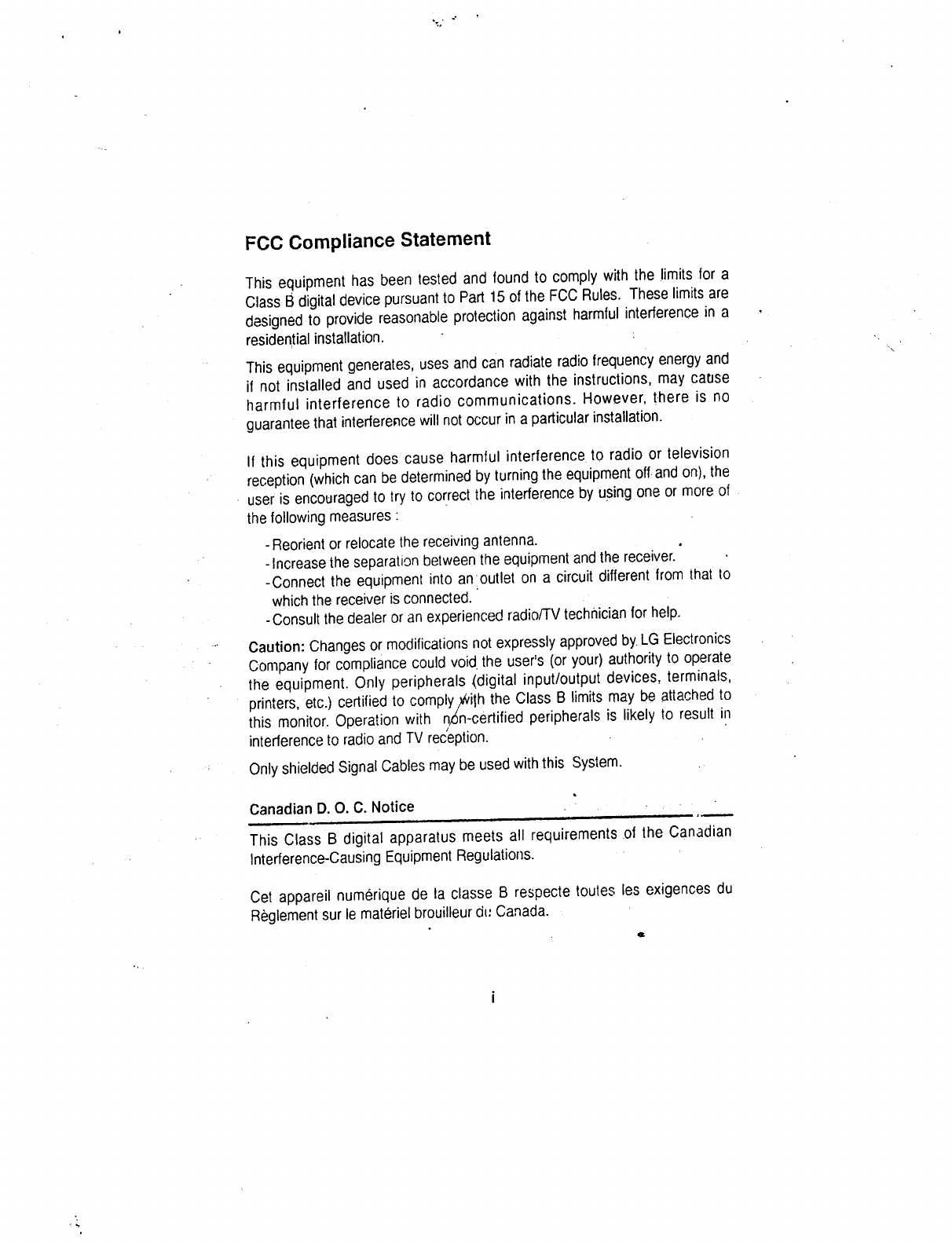 LG Electronics USA 14-inch Color Monitor Users Manual