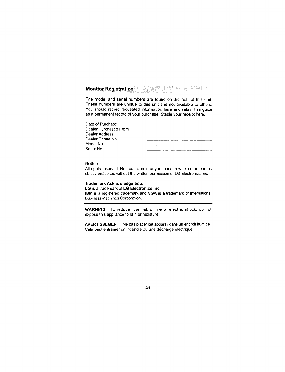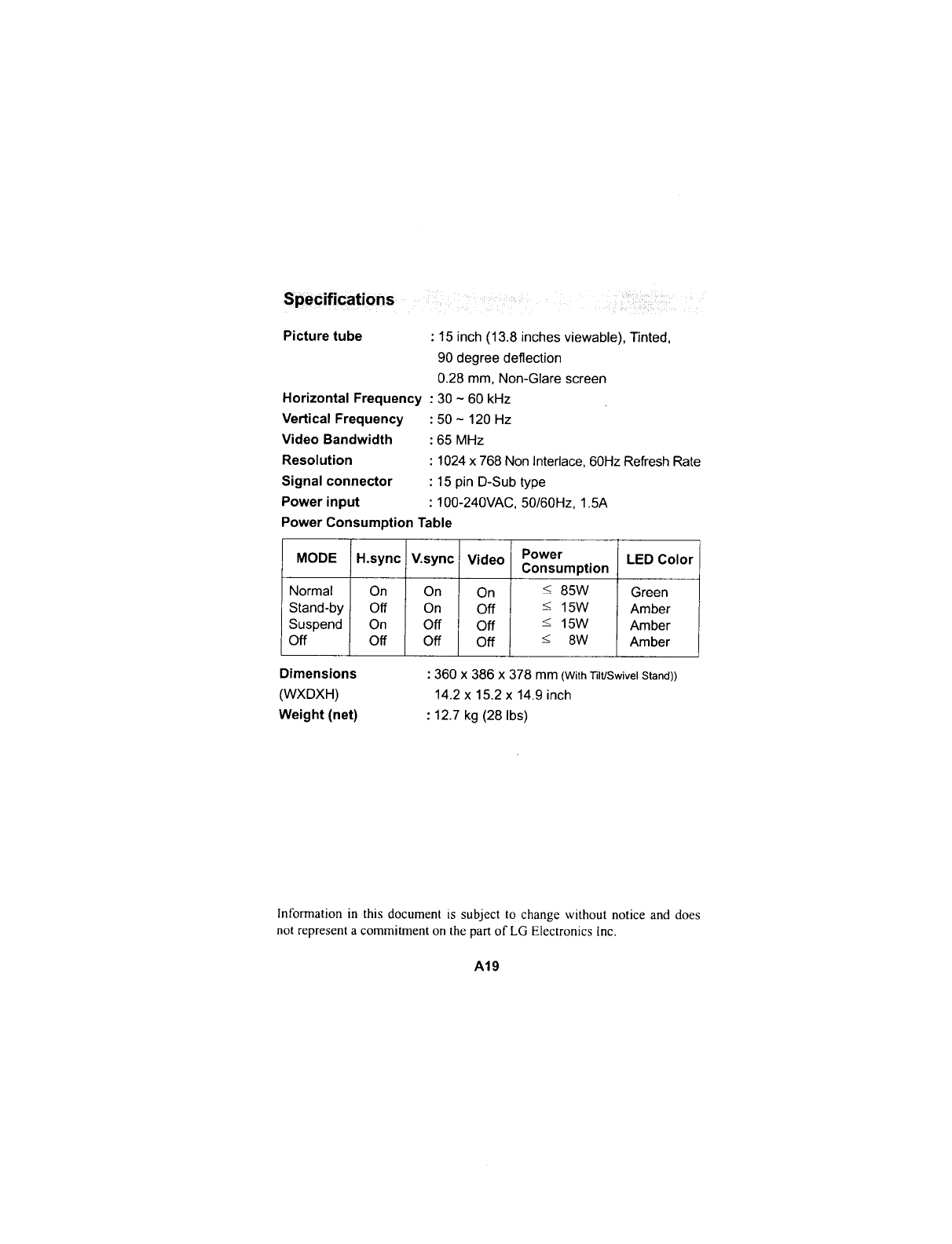 LG Electronics USA 15-inch Color Monitor Users Manual