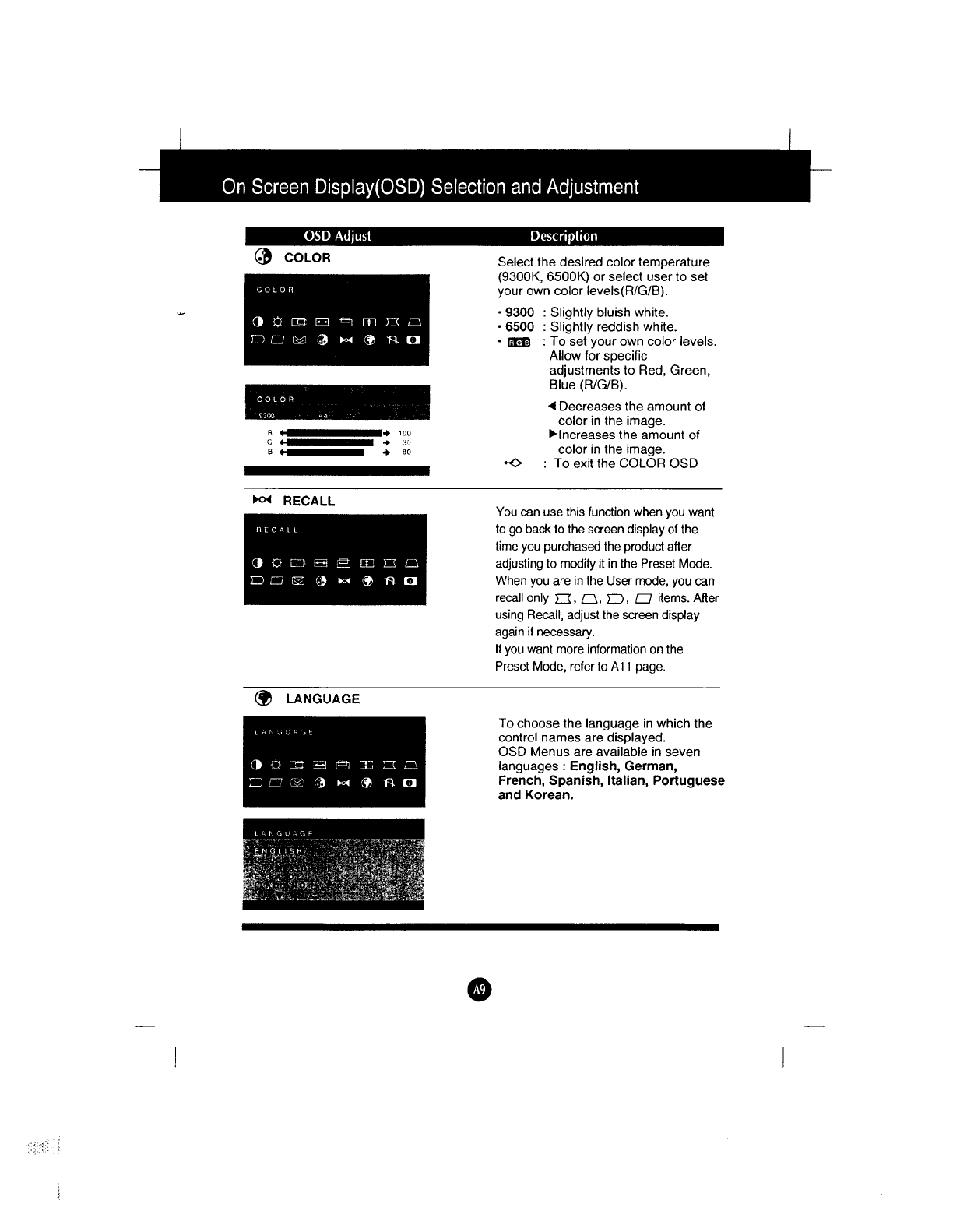 LG Electronics USA 15-inch Color Monitor Users Manual