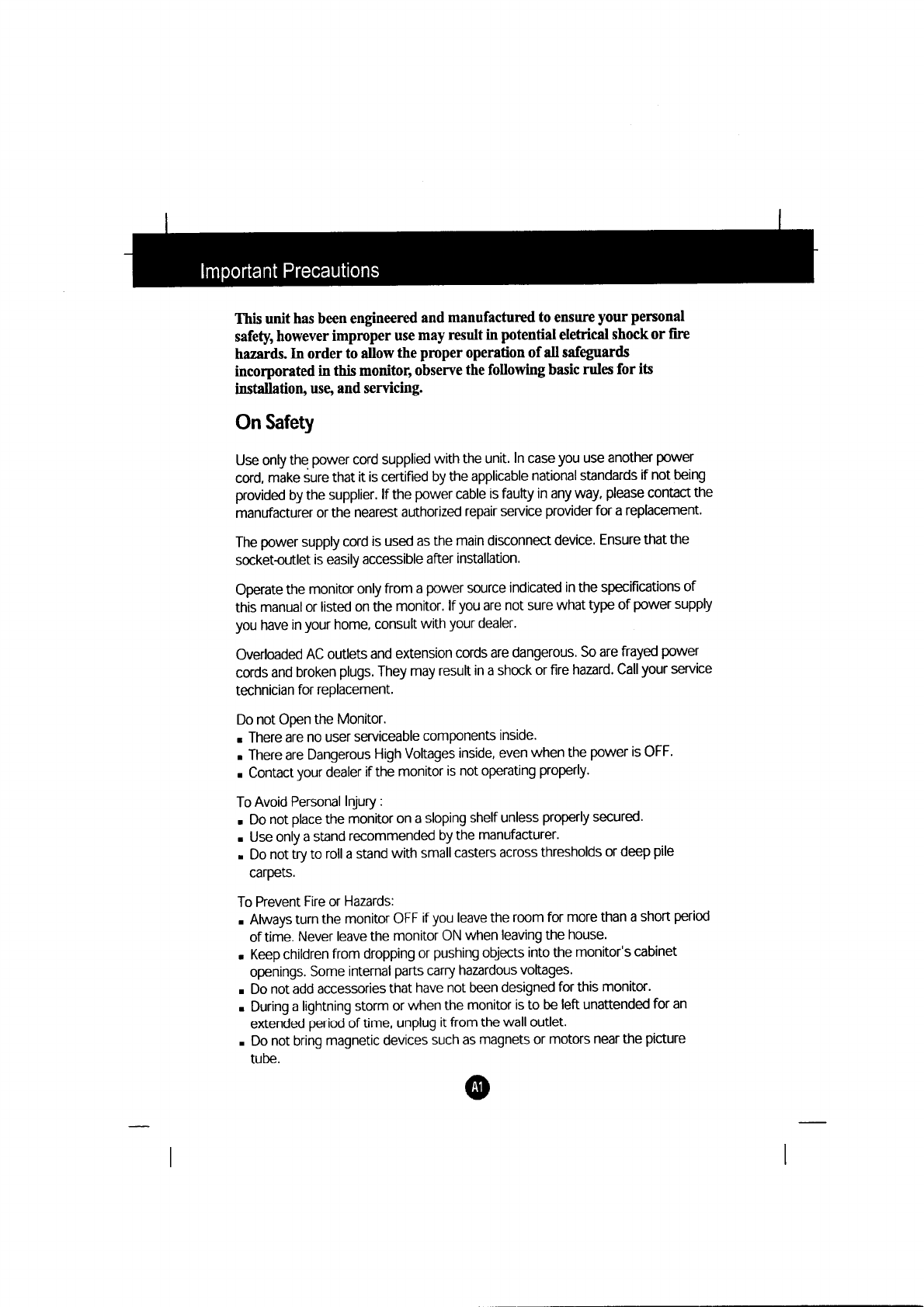 LG Electronics USA 15-inch CRT Monitor Users Manual