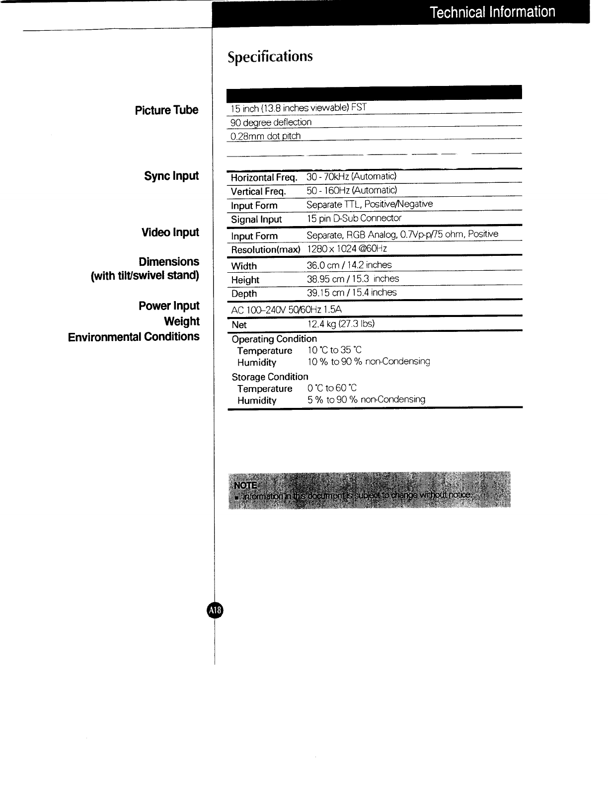 LG Electronics USA 15-inch Color Monitor Users Manual