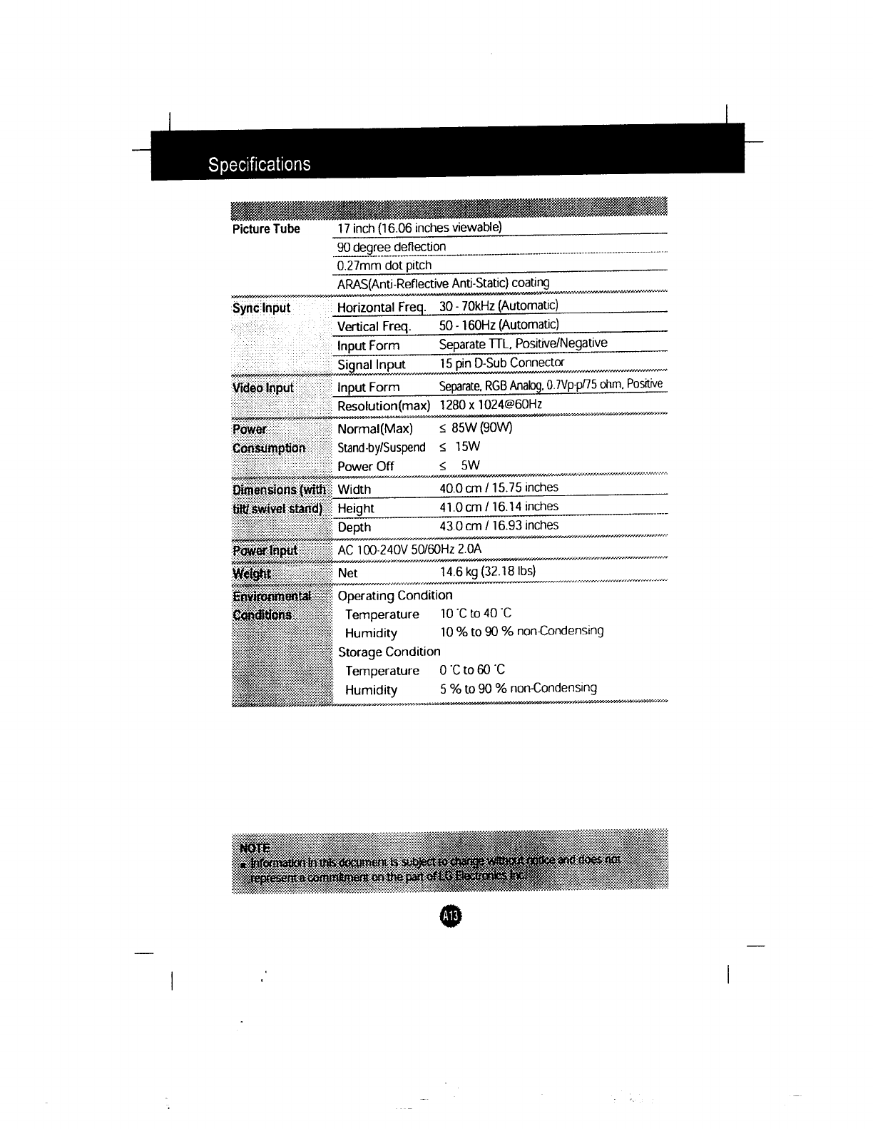 LG Electronics USA CB773F 17-inch Color CRT Monitor User Manual Unknown