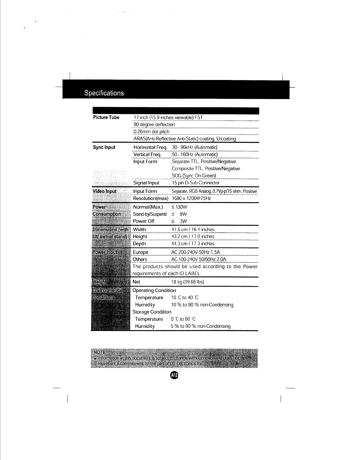 LG Electronics USA 17 inch Color Monitor Users Manual