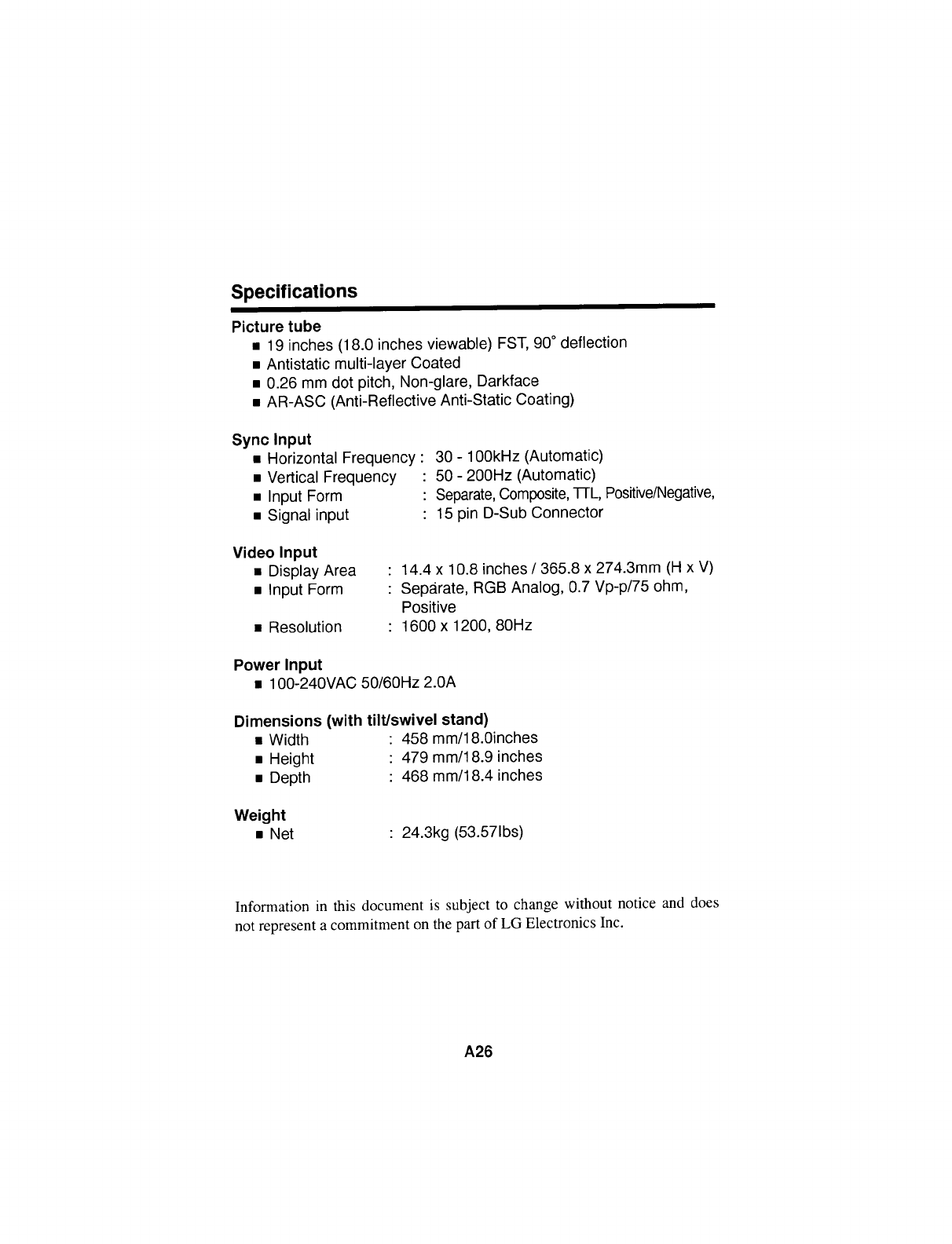 LG Electronics USA CB910 19-inch Color Monitor with USB Hub User Manual