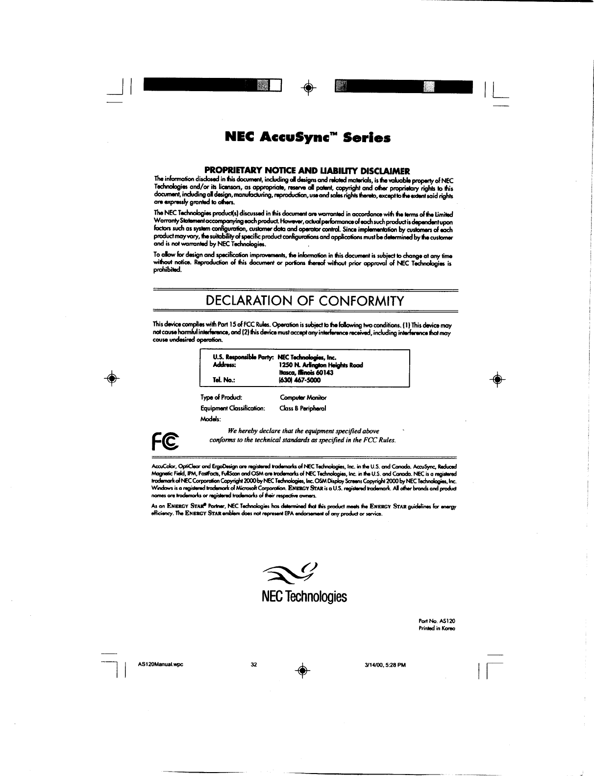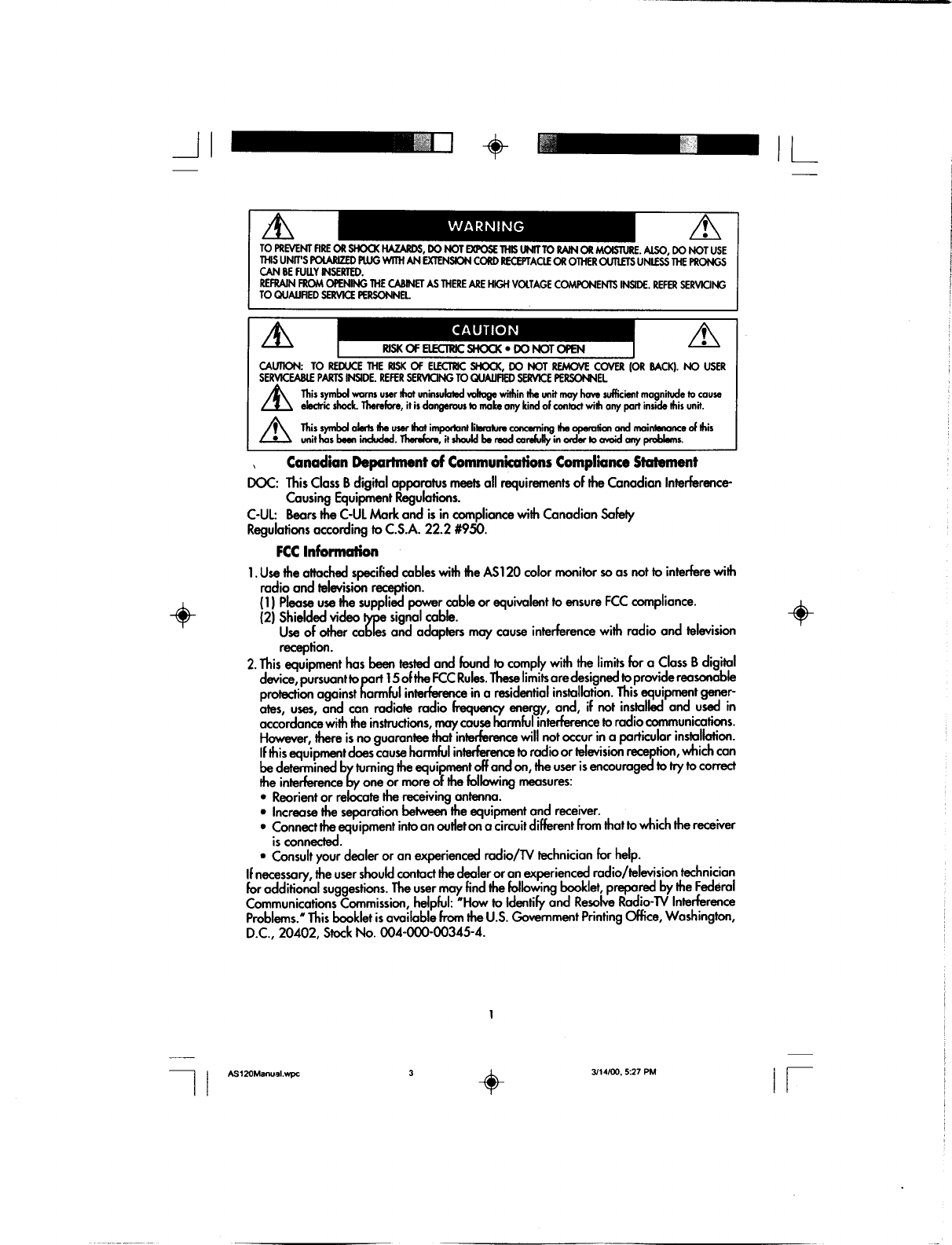 LG Electronics USA 21-inch Color Monitor Users Manual