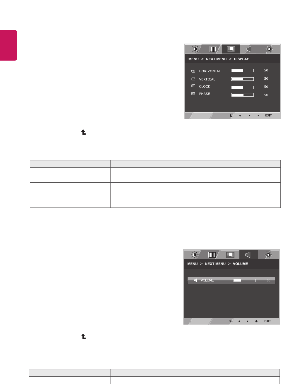 DISPLAY HORIZONTAL ●To adjust the position of the screen