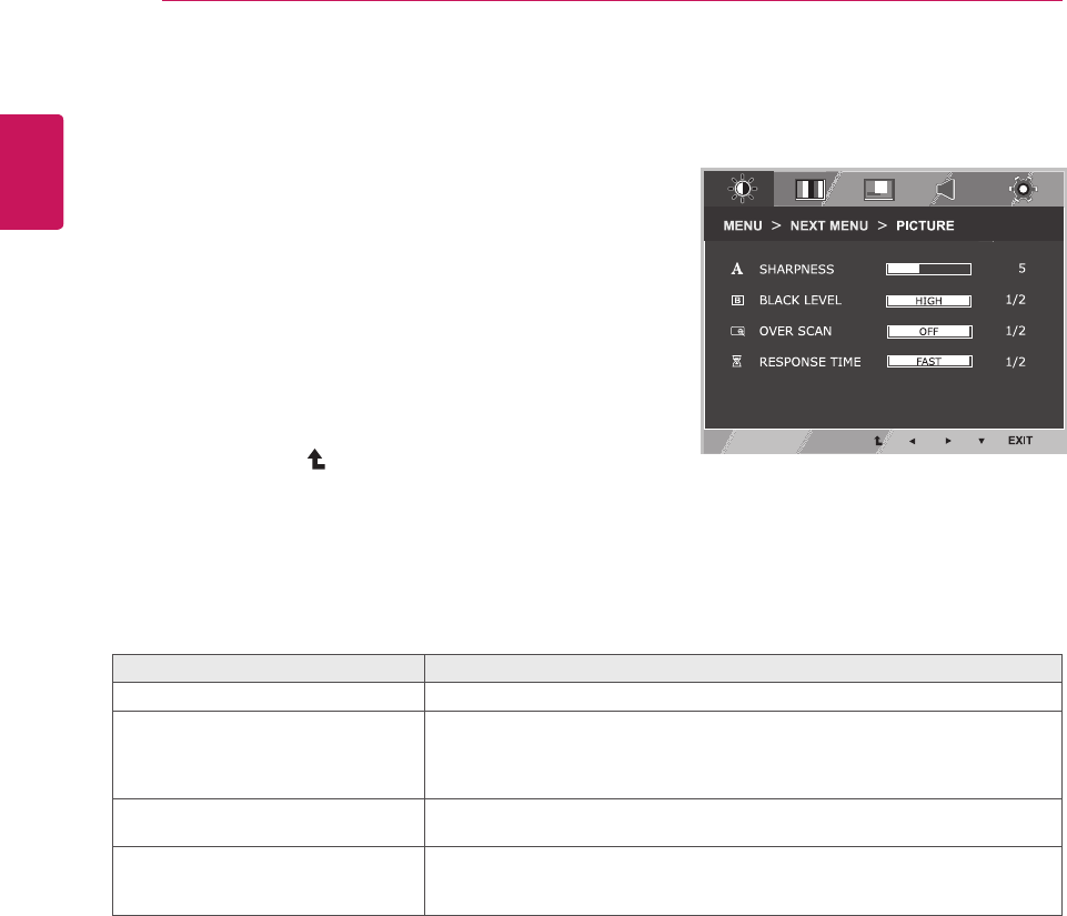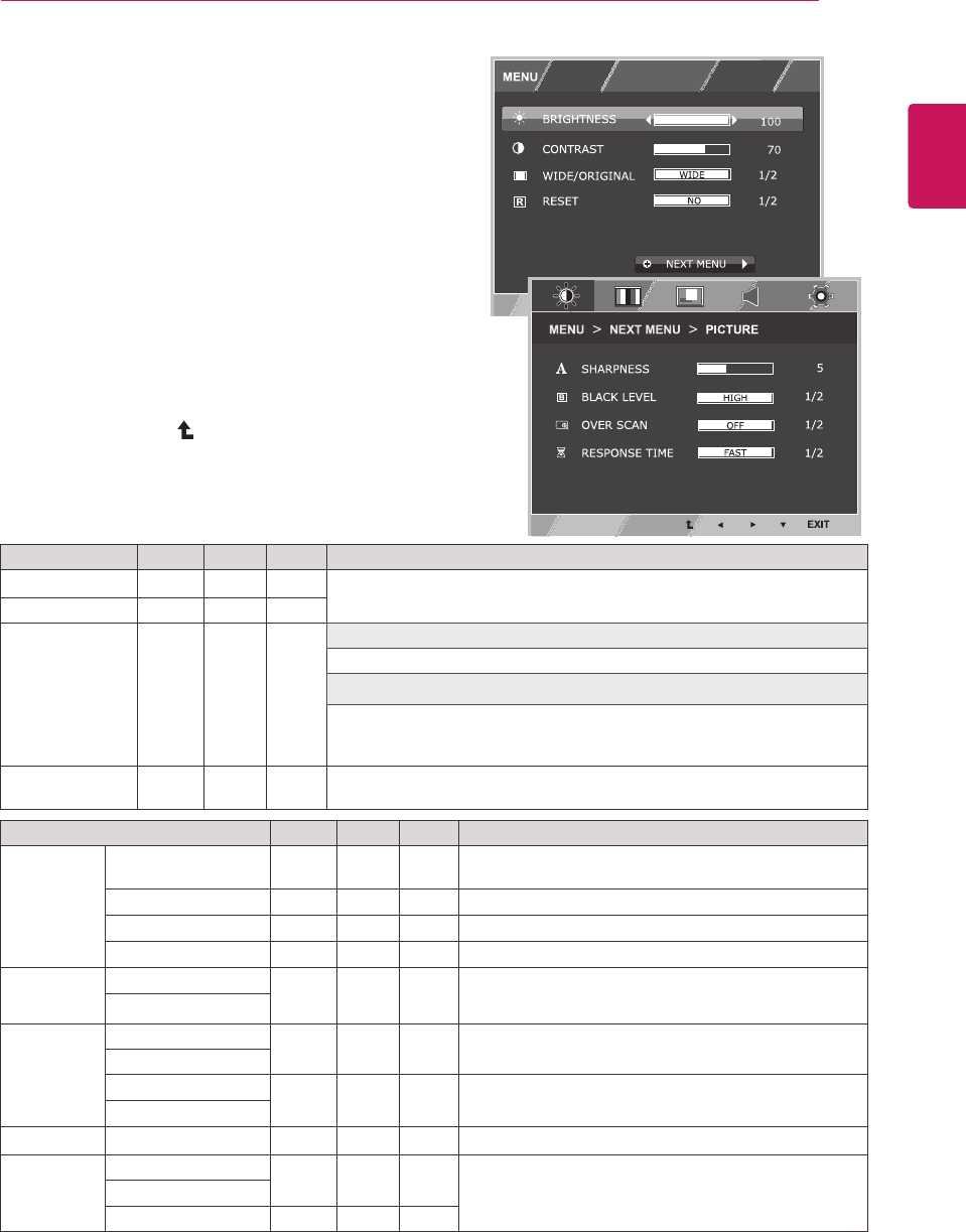 OVER SCAN To select the range of output image for DTV timing in HDMI input.(only for HDMI