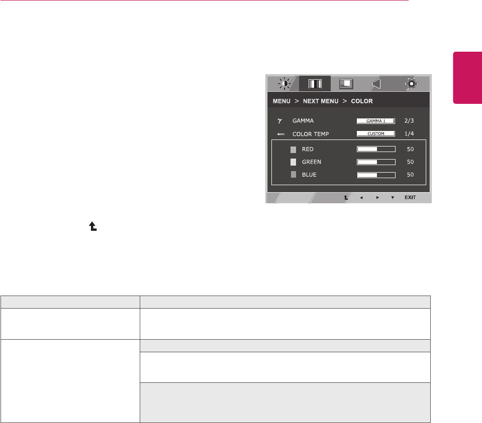 COLOR GAMMA ● ● ● To customize the color of the screen