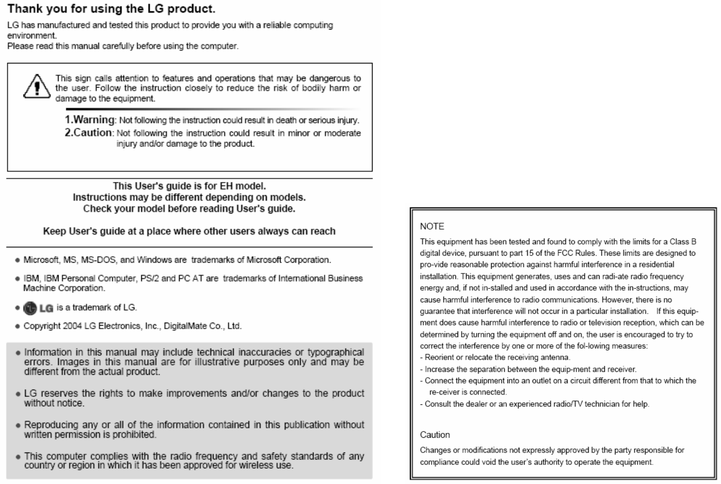 LG Electronics USA DT-EH PERSONAL COMPUTER User Manual EHEM