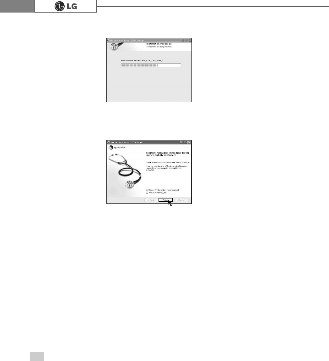 ⓢNorton Antivirus installation is complete message appears. Click [Finish].