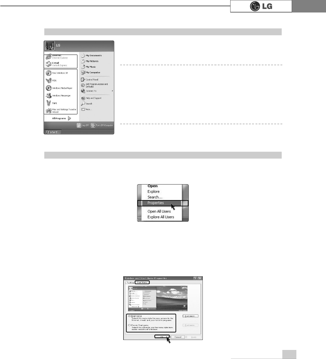 ⓟTo select the default start menu, click [Start Menu] on the [Taskbar and Start