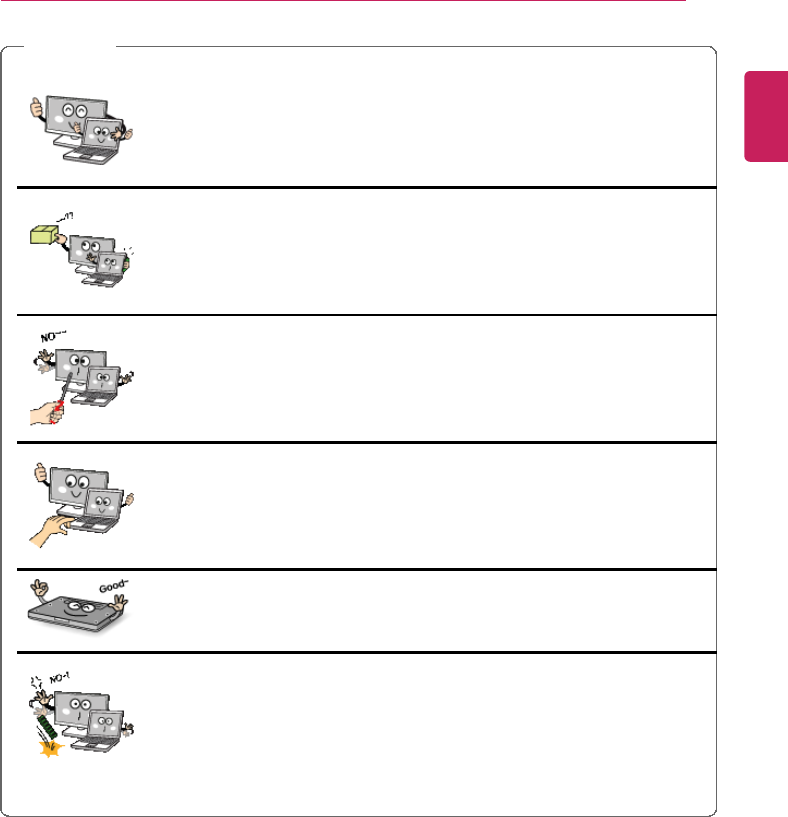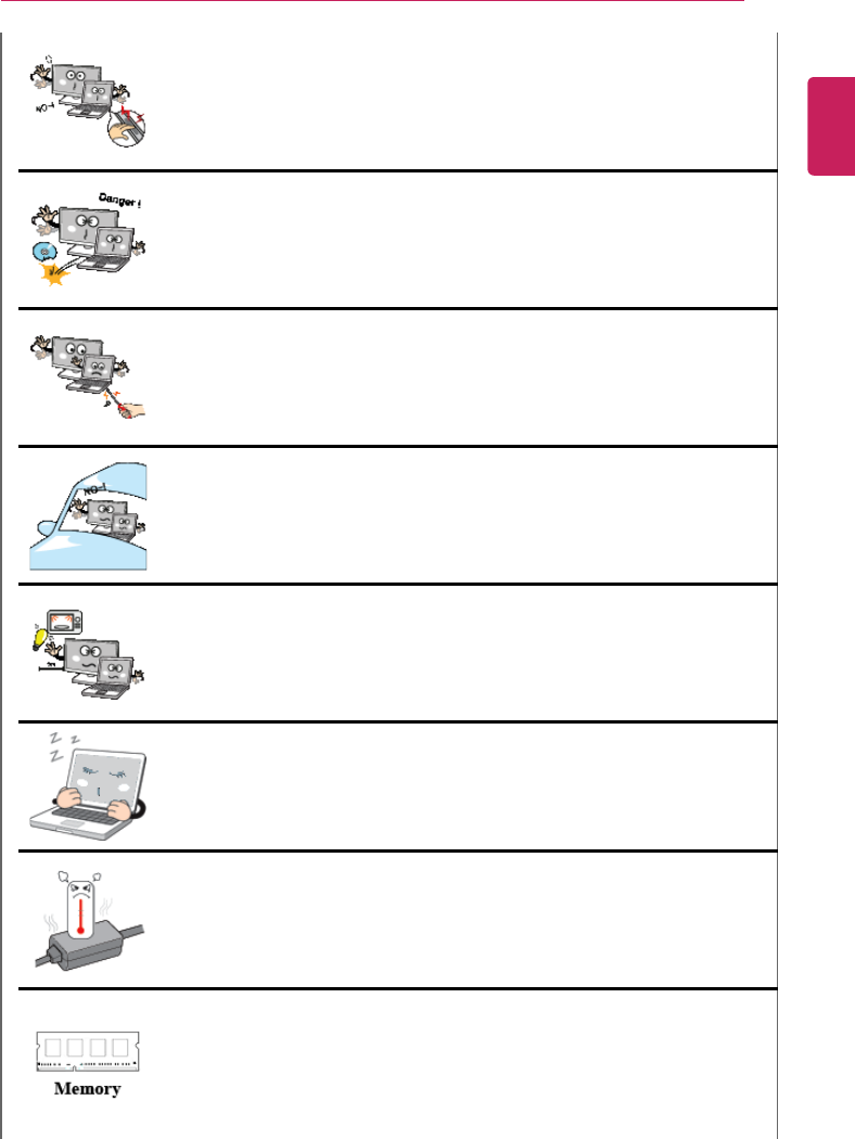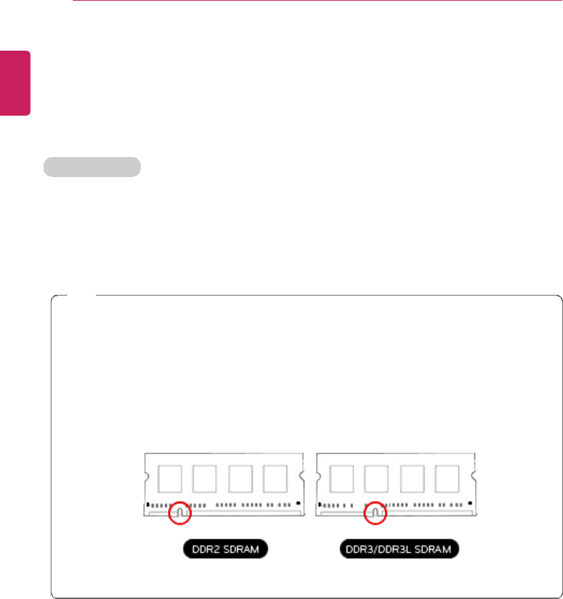 •Use only the main memory module for replacement manufactured by LG. Using a