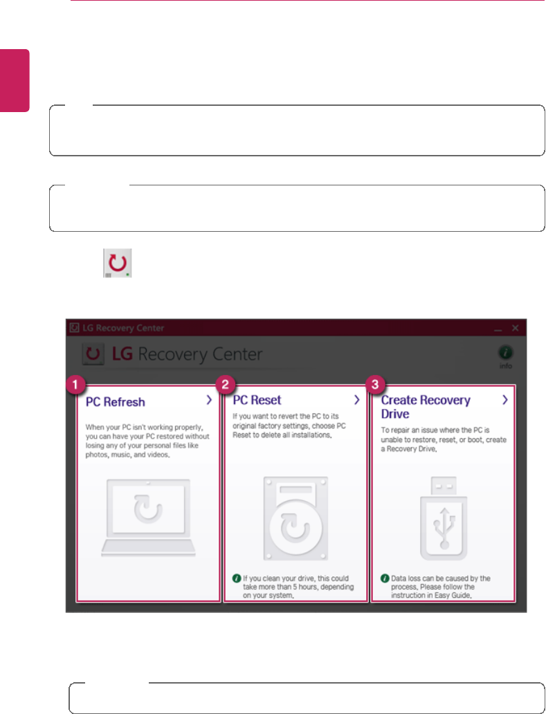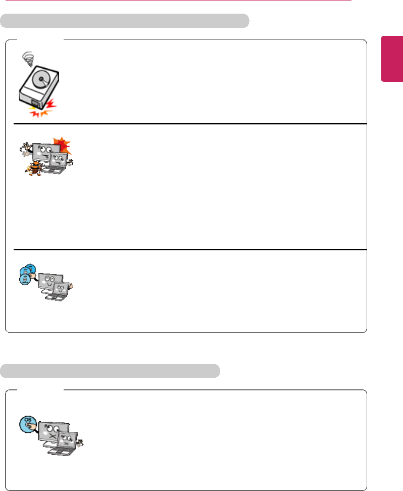 •LG Electronics does not provide warranty for the data loss. In order to minimize damage