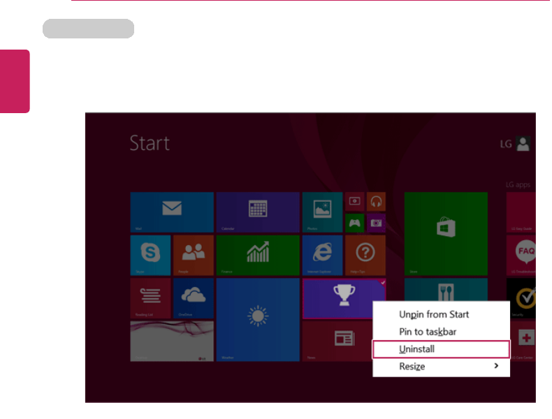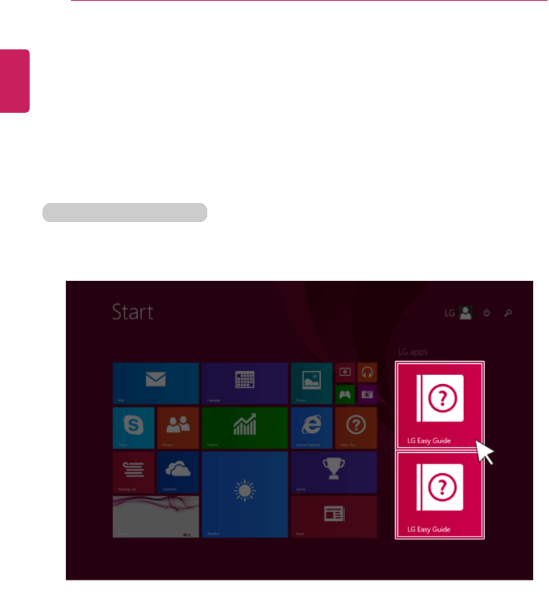 LG Easy Guide and LG Troubleshootingcan be used on the Start screen and the