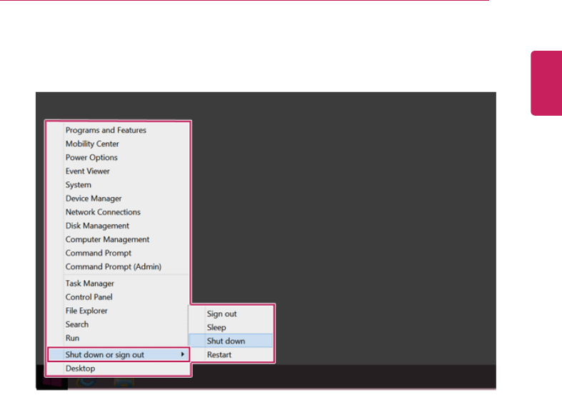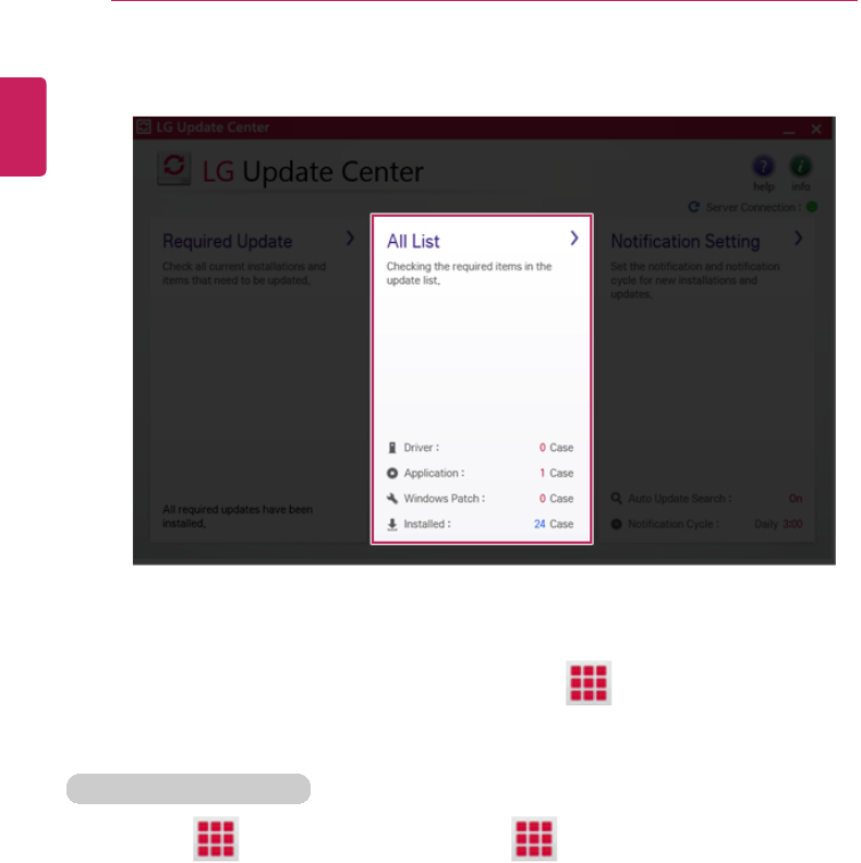 •If LG Easy Starter is not installed, refer to [Run, Stand by and Exit Windows Store