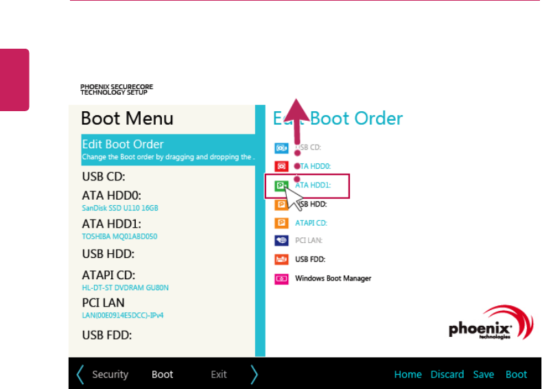 3Drag the icon of the device to change the booting order in the [Edit Boot Order] menu