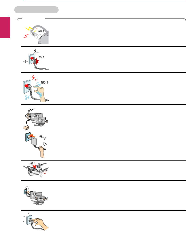 •Disconnect the telephone line if linked to the modem. An electric shock or fire may