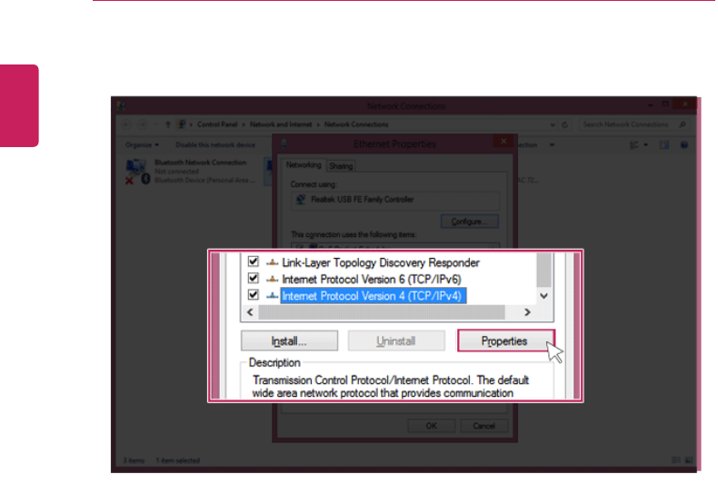 7Select [Internet Protocol Version 4 (TCP/IPv4)] and click [Properties].