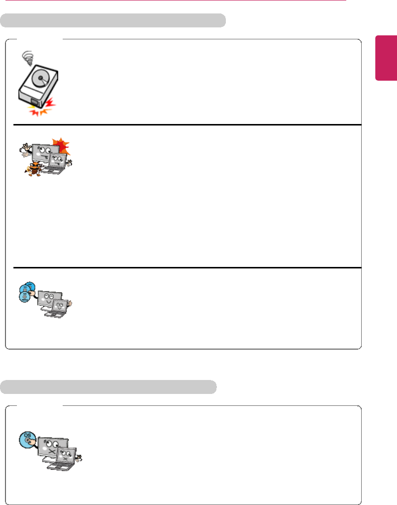 •LG Electronics does not provide warranty for the data loss. In order to minimize damage