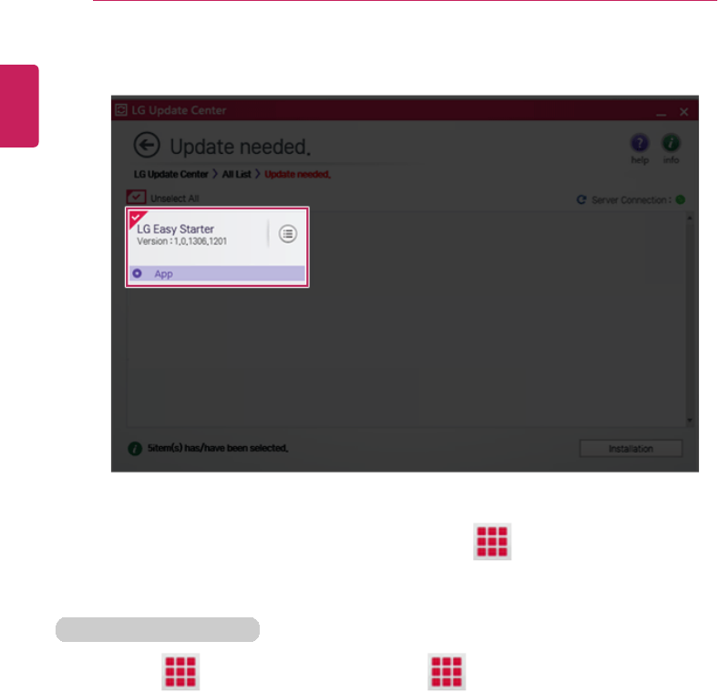 •If LG Easy Starter is not installed, refer to [Running, Standing by and Exiting App]