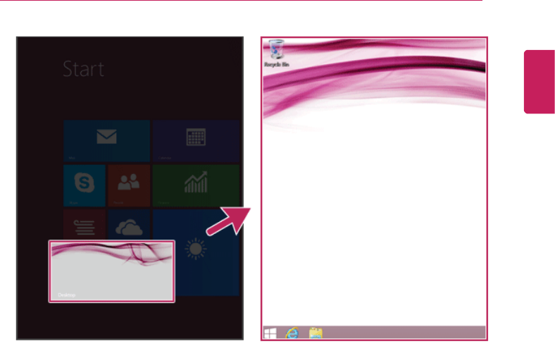 1On the Start screen, click the [Desktop] tile to convert the screen to the Desktop
