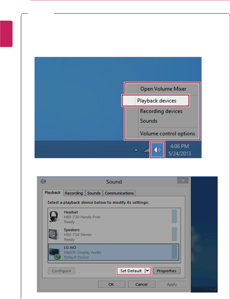 •If you do not set Speaker as the default value after disconnecting the HDMI cable,