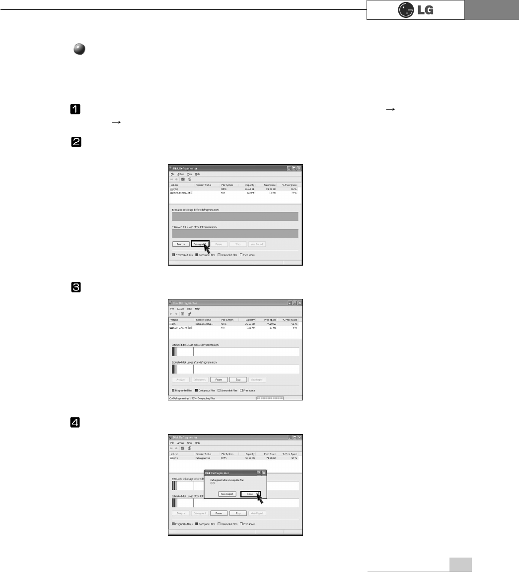 ciently and fast. Finish other application programs before running the Disk Defragmenter.