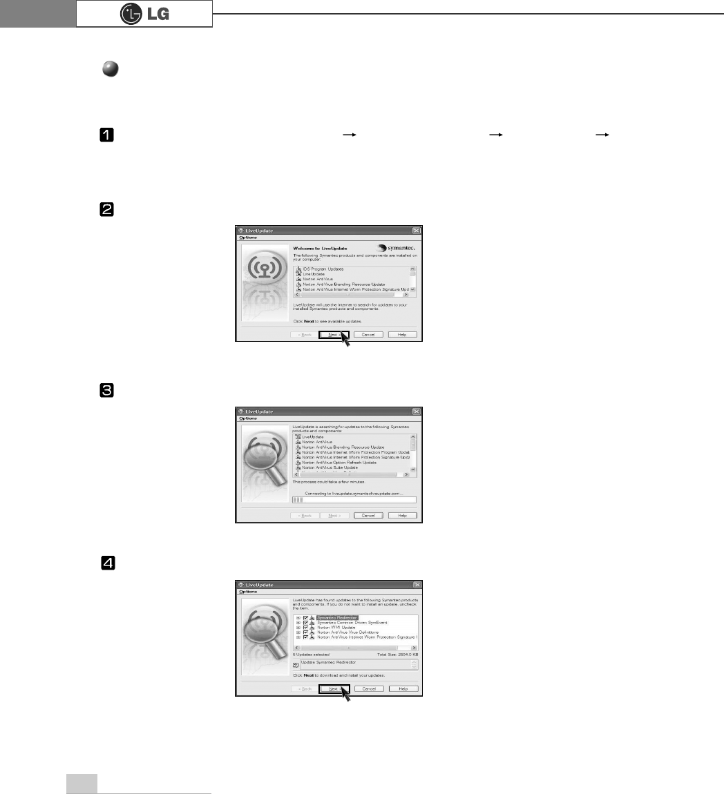 Click [Start] and [All programs] [Norton Antivirus] [LiveUpdate]