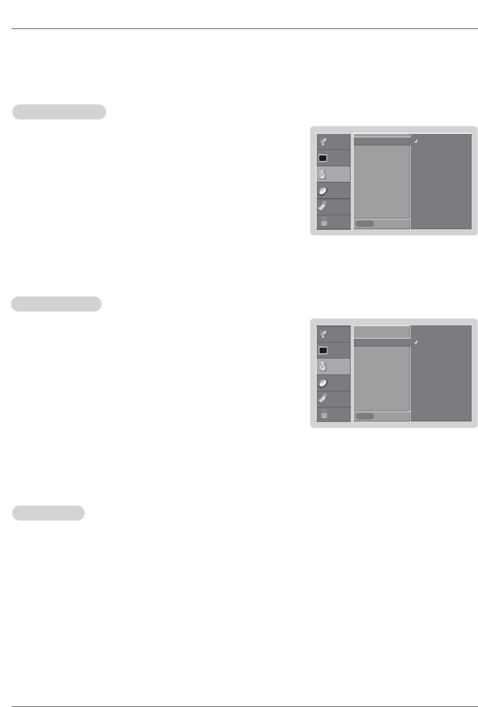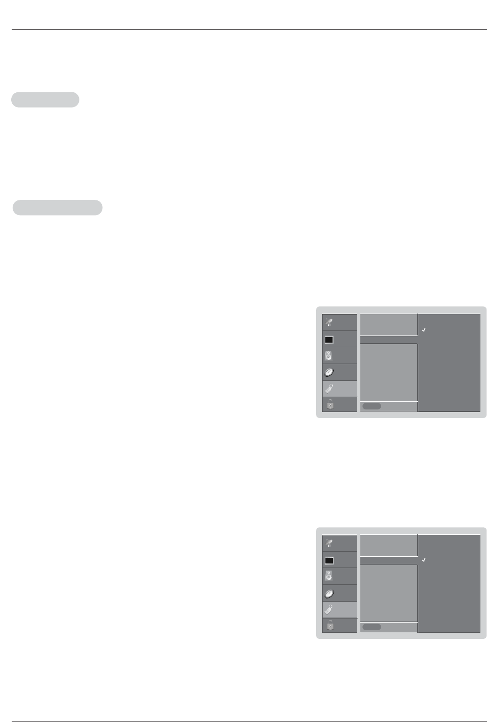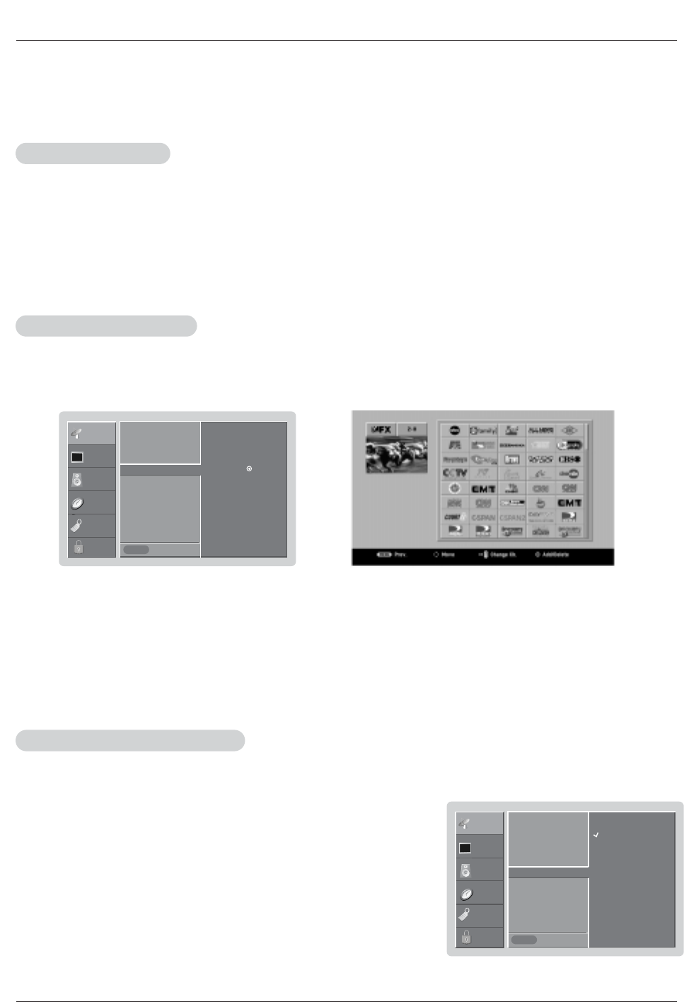 VHF 2 ~ 13, UHF 14 ~ 69, CATV 1 ~ 125, CADTV 1 ~ 135. DTV 2 ~ 69