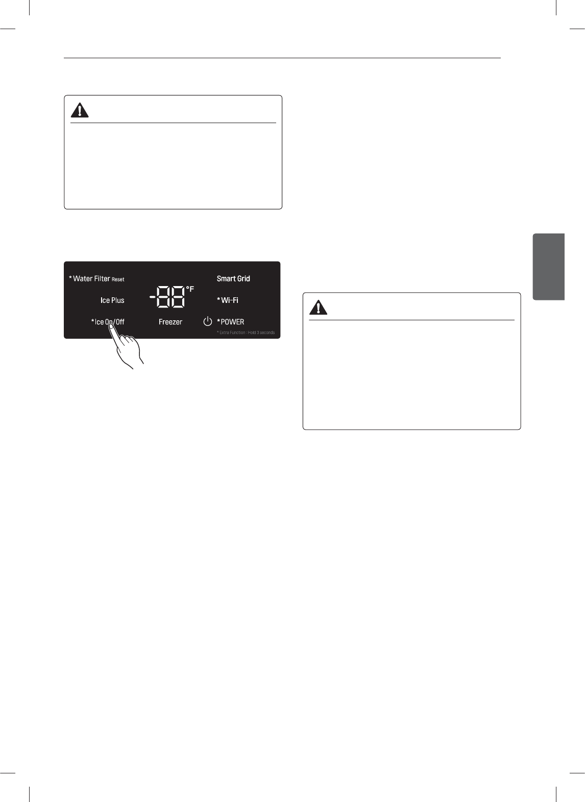 %Do not touch frozen food or the metal parts in the freezer compartment with wet or damp hands. Doing so