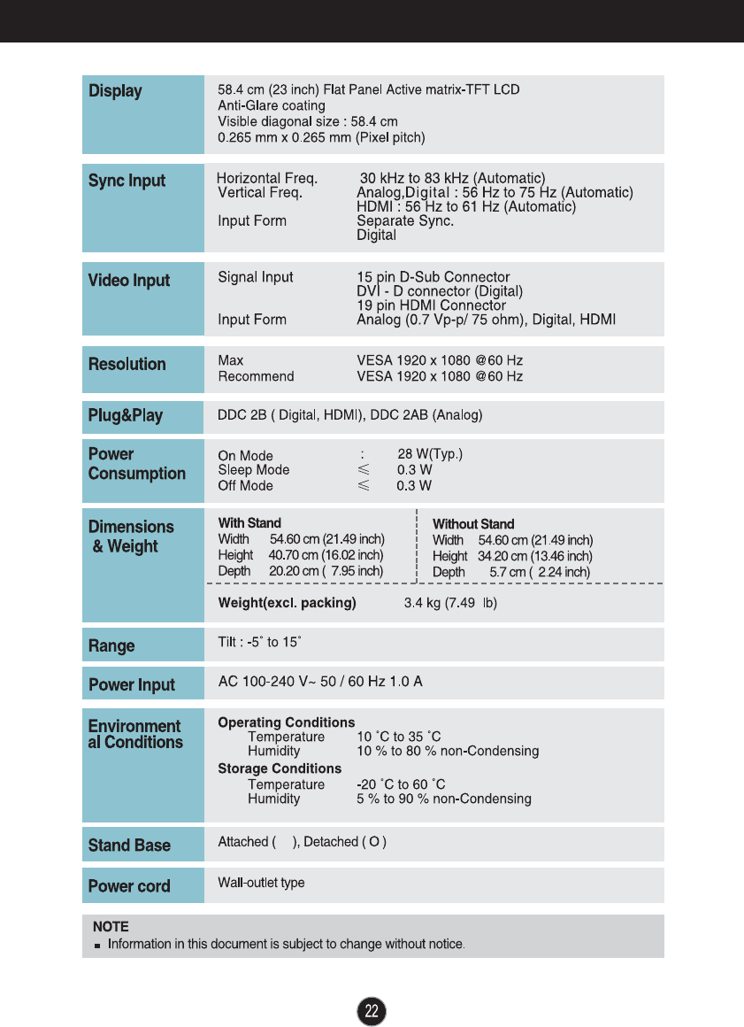 LG Electronics USA LCD Monitor W19 2243S T ENG