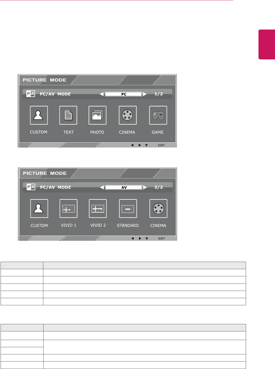 19 PICTURE MODE Setting