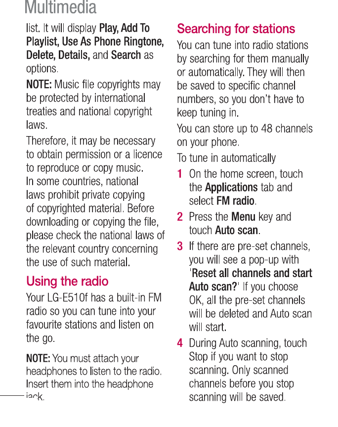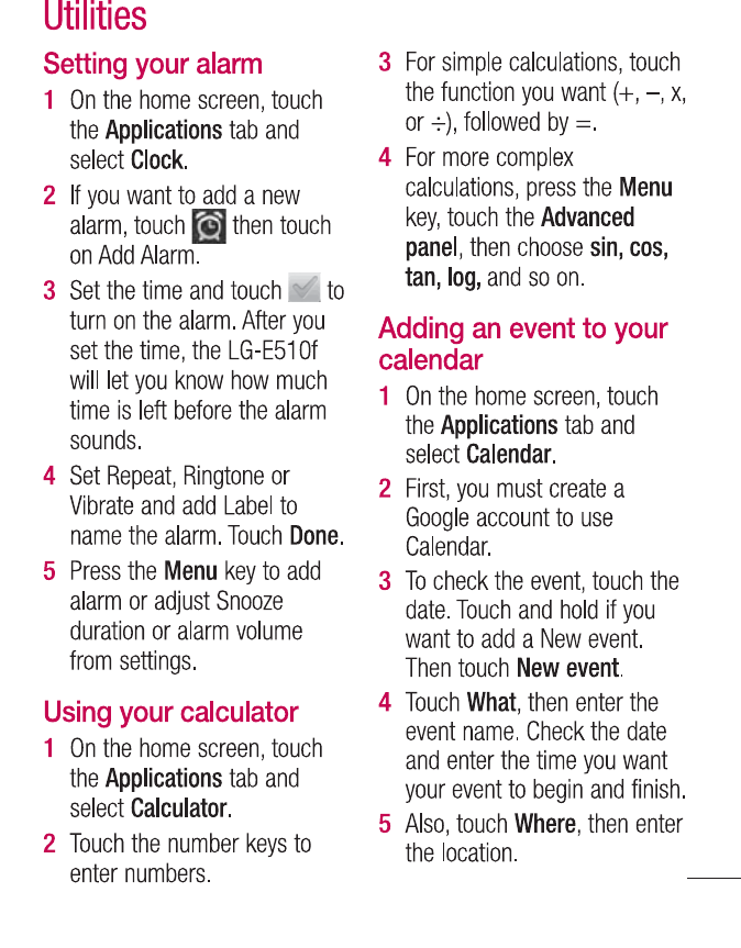 LG Electronics USA E510F Cellular/PCS GSM/EDGE and Cellular WCDMA Phone with WLAN and Bluetooth User Manual