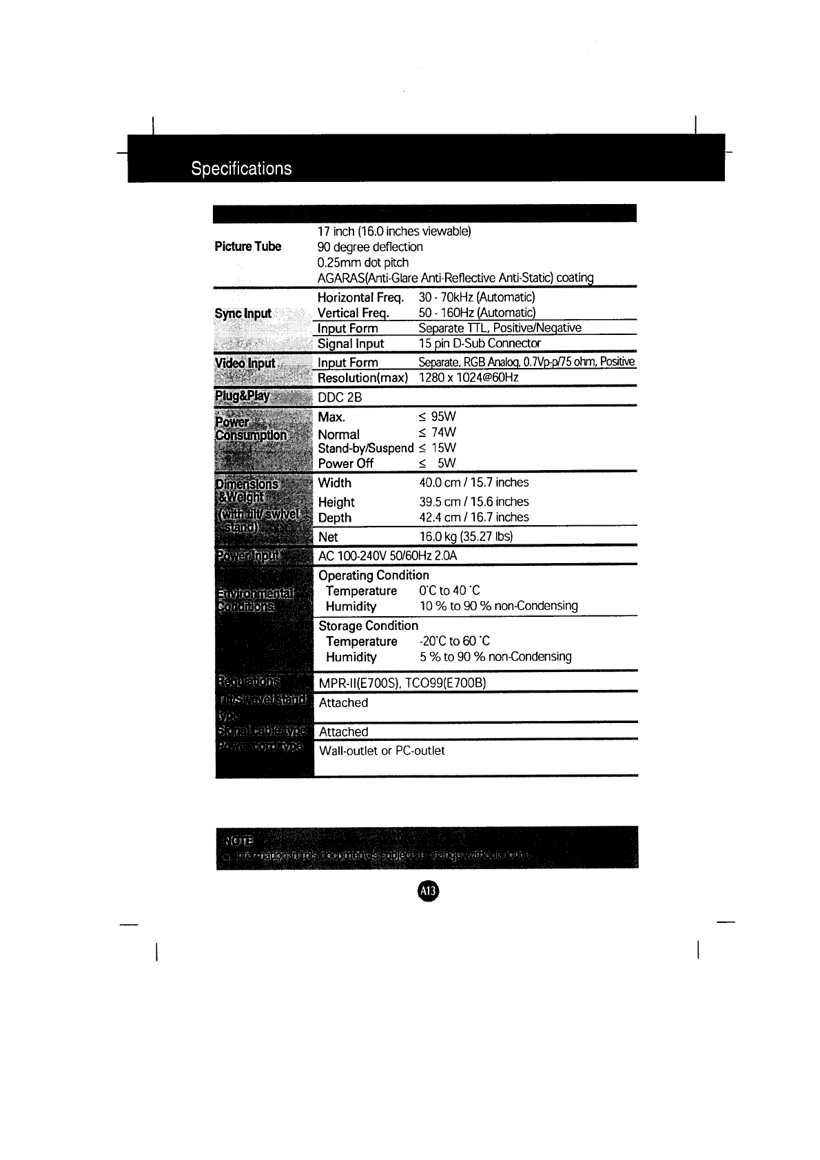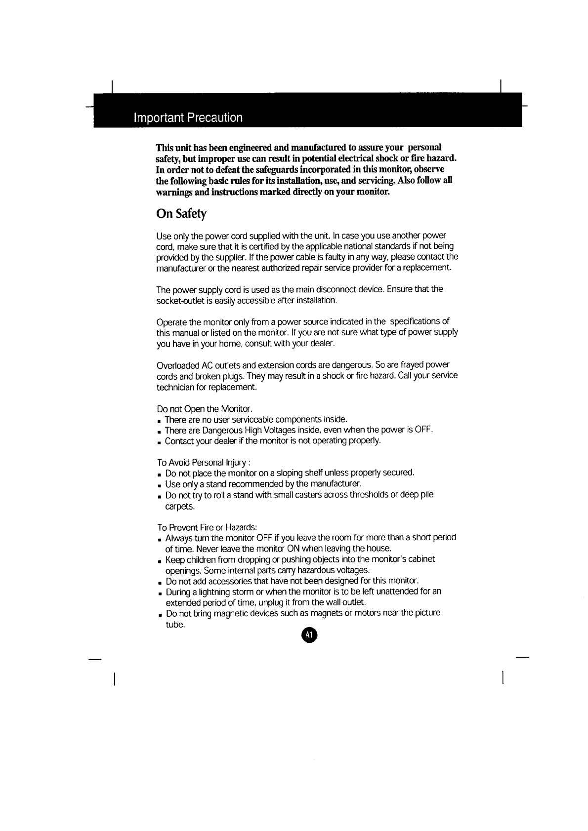 LG Electronics USA 17-inch CRT Monitor Users Manual