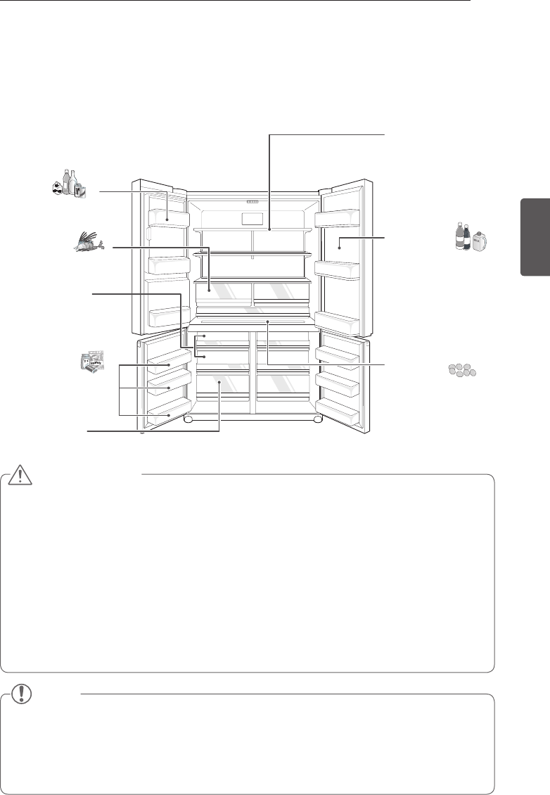 No llene o envase en exceso los alimentos en los compartimentos de la puerta. Podría dañar el