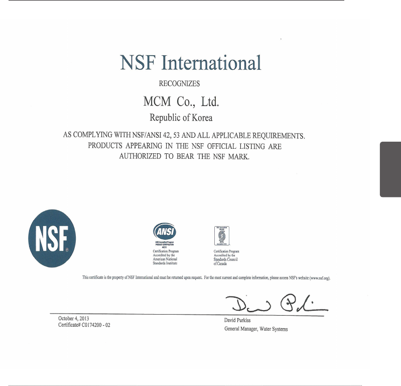 19. Reemplazo del filtro (cartucho) de agua debido a la presión del agua que esté fuera de los valores especificados o