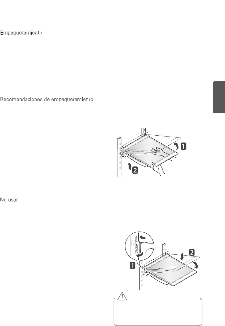 compartimento o sufrir lesiones personales al retirar los alimentos aplicando una fuerza excesiva.