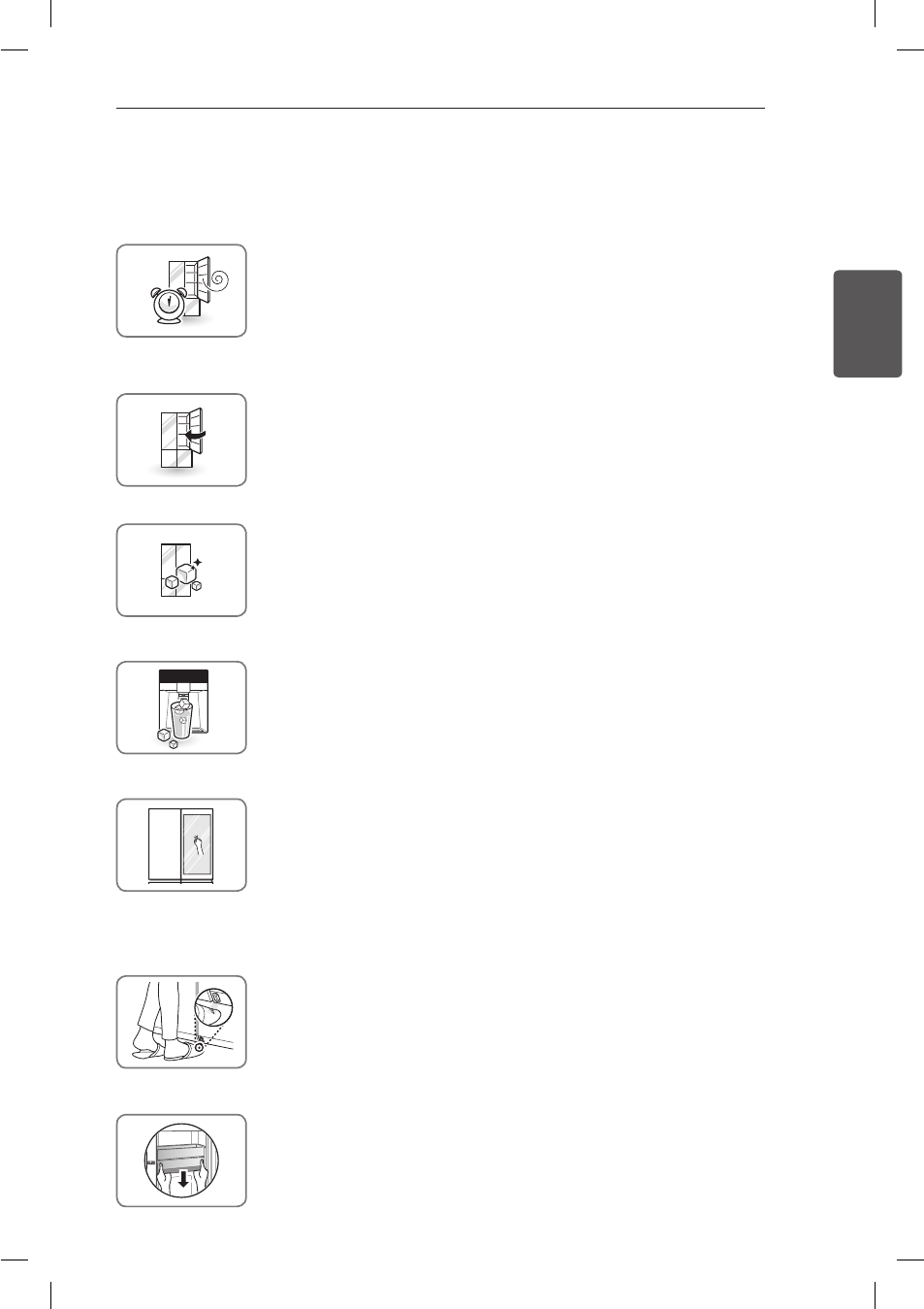 tout ruban adhésif à l’intérieur du réfrigérateur et ouvrez les portes du réfrigérateur