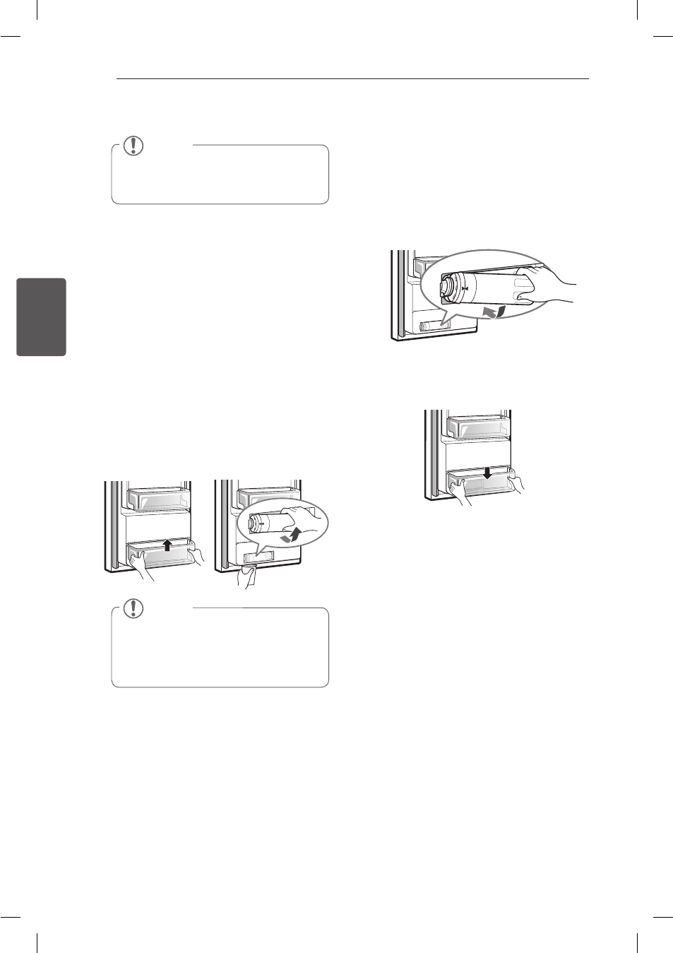 19. Reemplazo del filtro (cartucho) de agua debido a la presión del agua que esté fuera de los valores especificados o