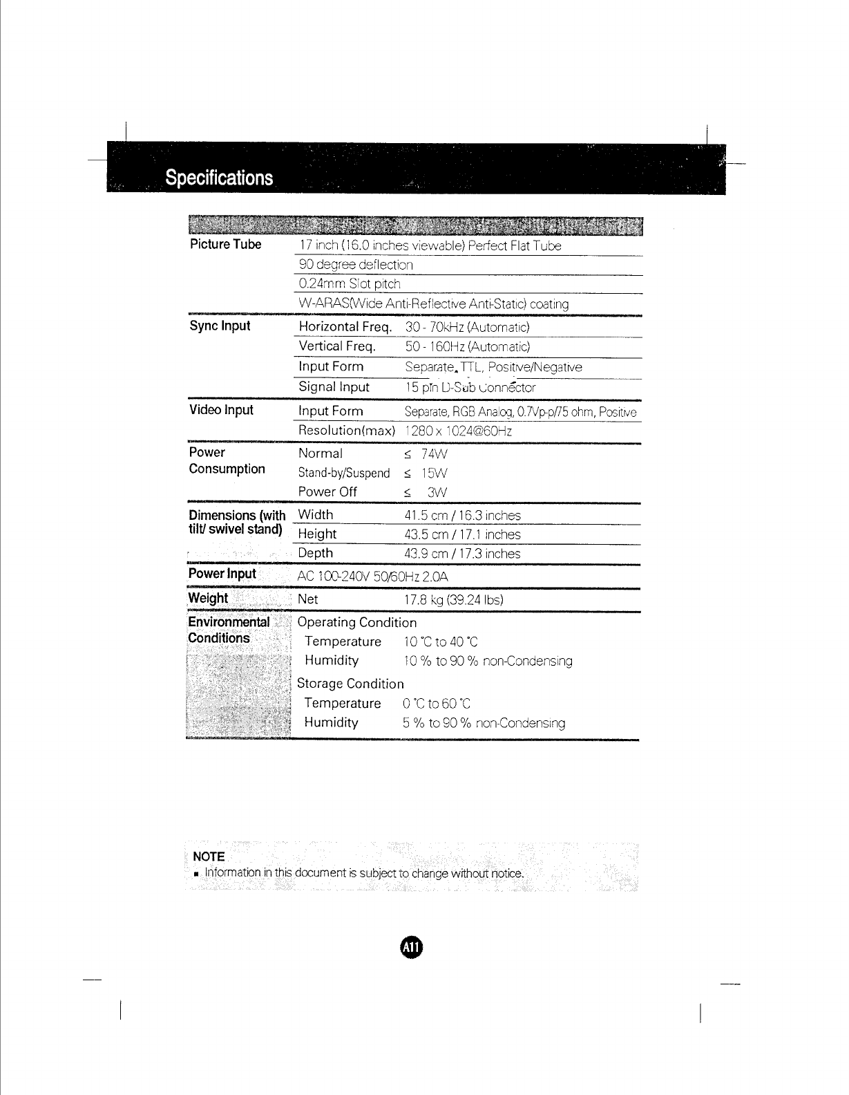 LG Electronics USA 17-inch Color CRT Monitor Users Manual