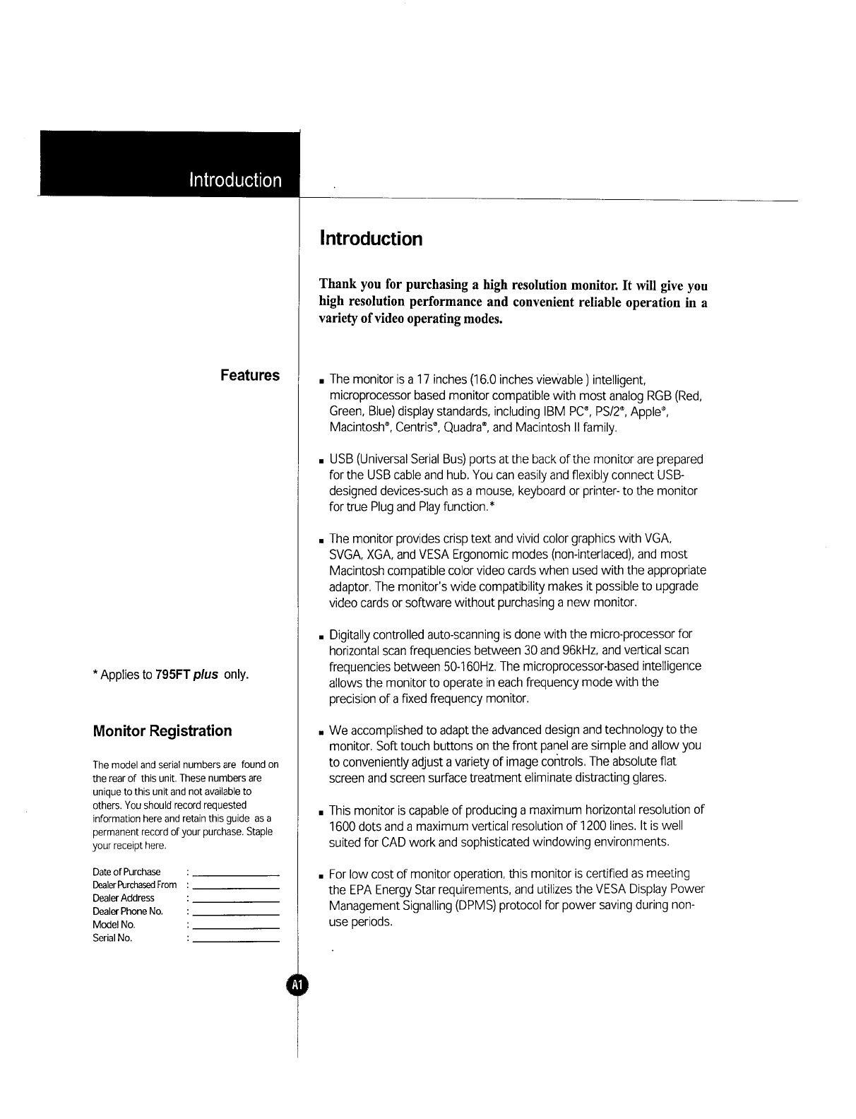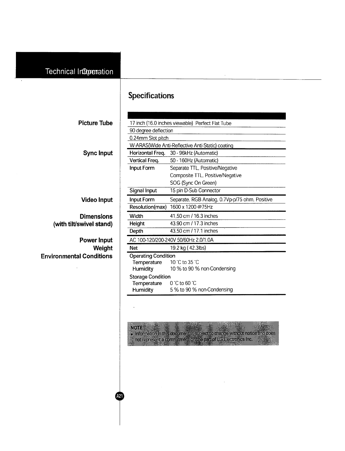 LG Electronics USA FB795C 17-inch Color Monitor User Manual