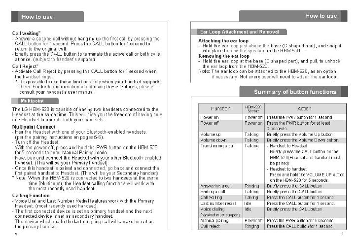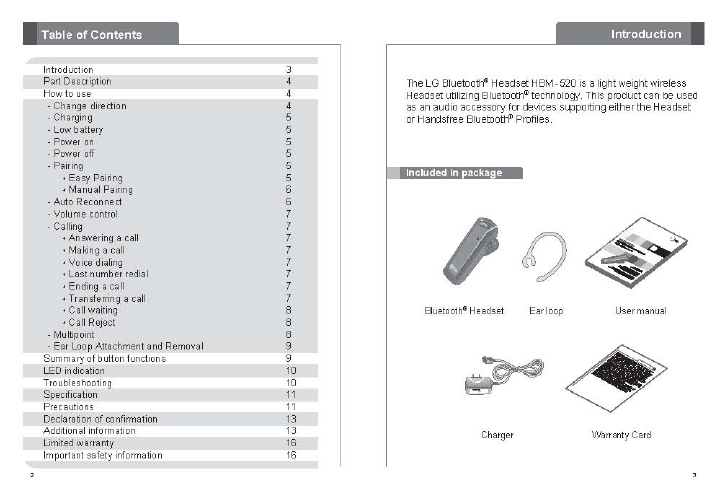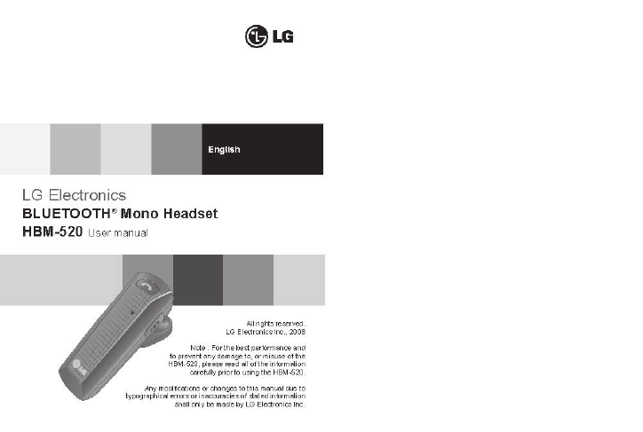 LG Electronics USA HBM520 Bluetooth Mono Headset User Manual