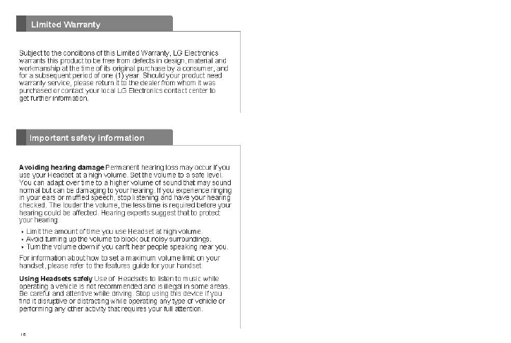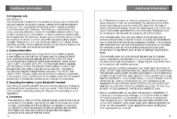 LG Electronics USA Bluetooth Mono Headset Users Manual