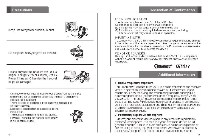 LG Electronics USA HBM530 Bluetooth Mono Headset User Manual HBM 530