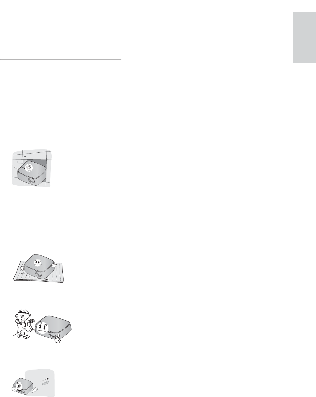 y Do not place the projector directly on a