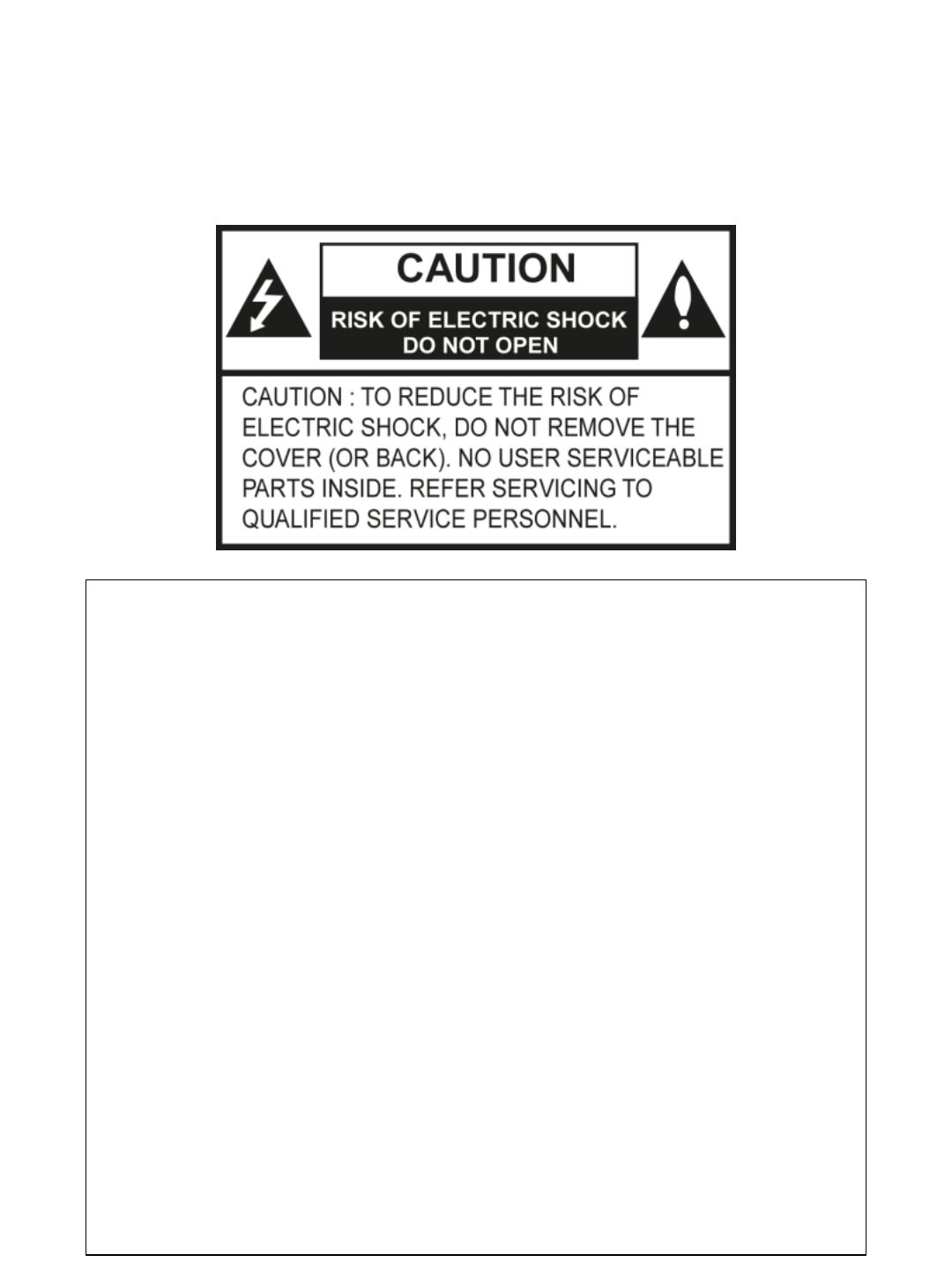 2) To reduce the risk of electric shock, do not remove the cover or back of