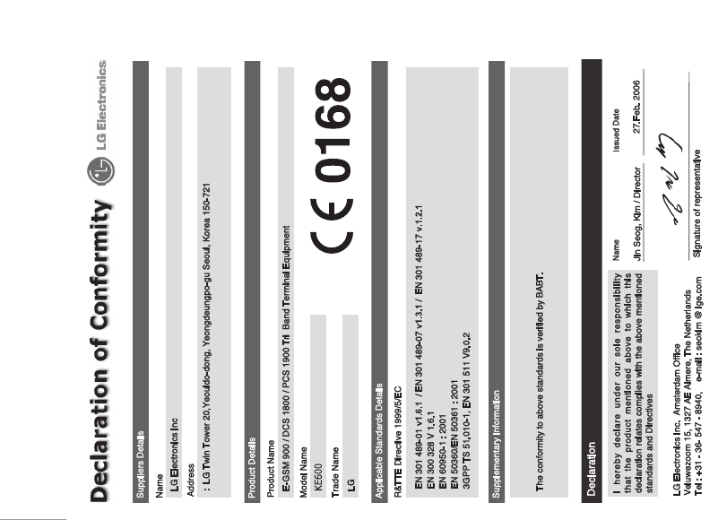 LG Electronics USA KE600 Tri-Band RF EDGE PCS Phone User Manual 00000 KE600 indd