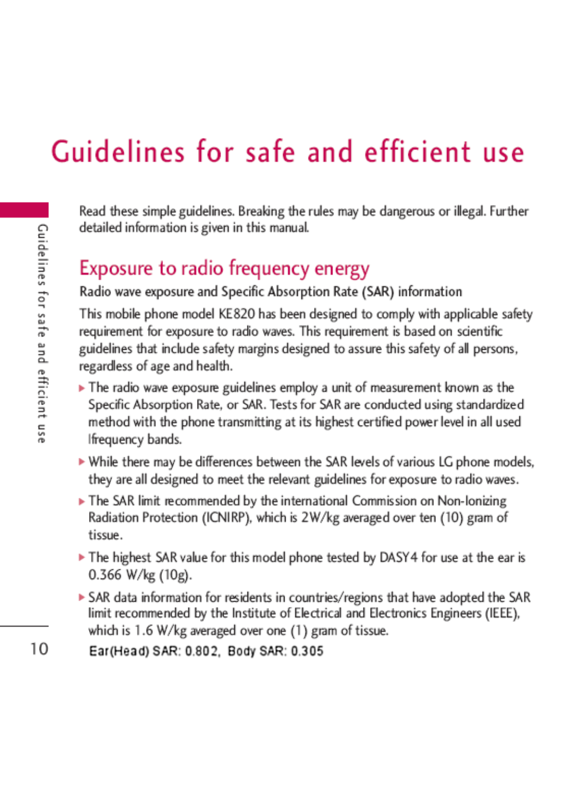 LG Electronics USA KE820 GSM850/GSM900/GSM1800/GSM1900 w/Bluetooth User Manual
