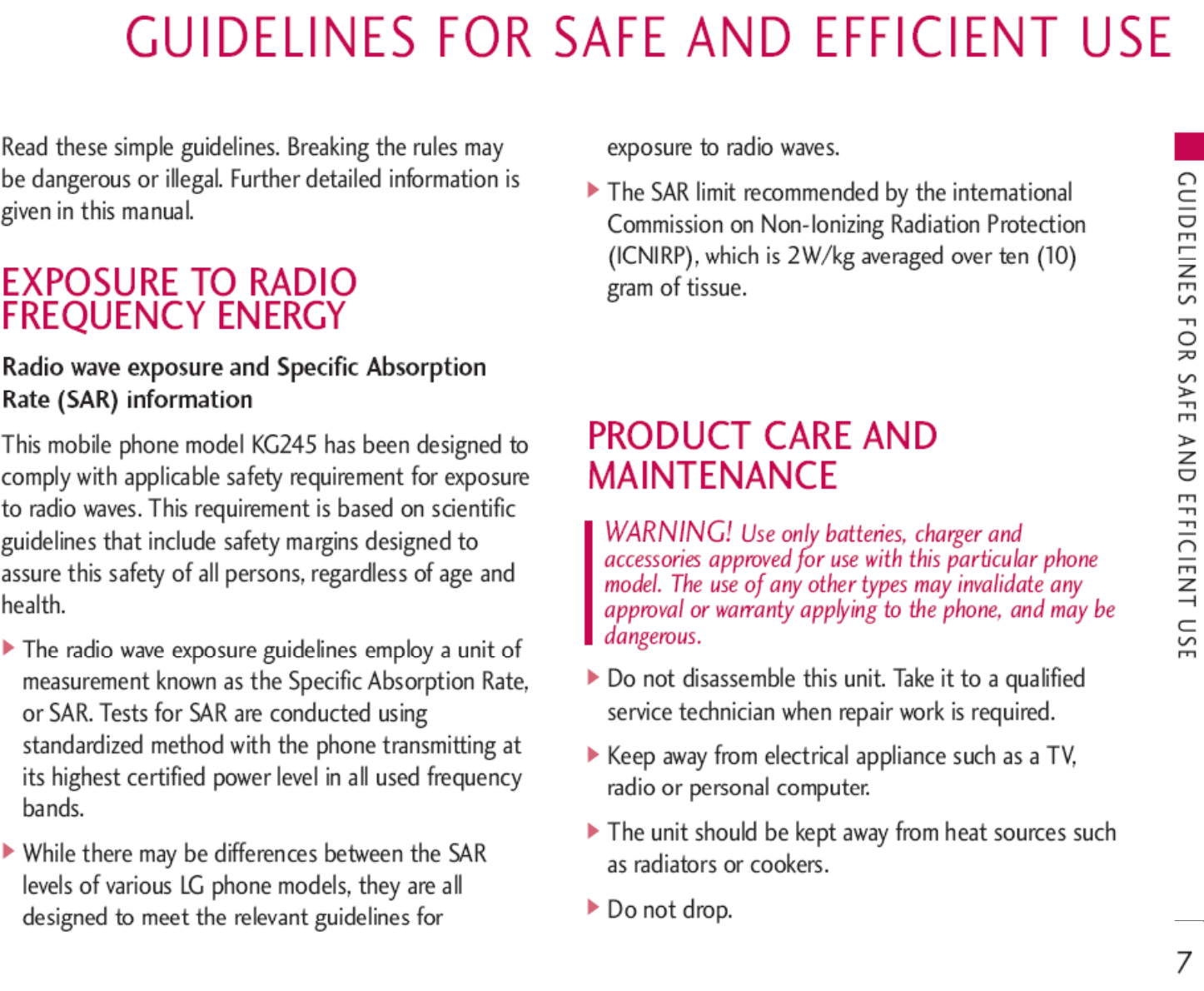 LG Electronics USA KG245 GSM 900/1800/1900 PCS phone with Bluetooth User Manual KG245 Eng 0109